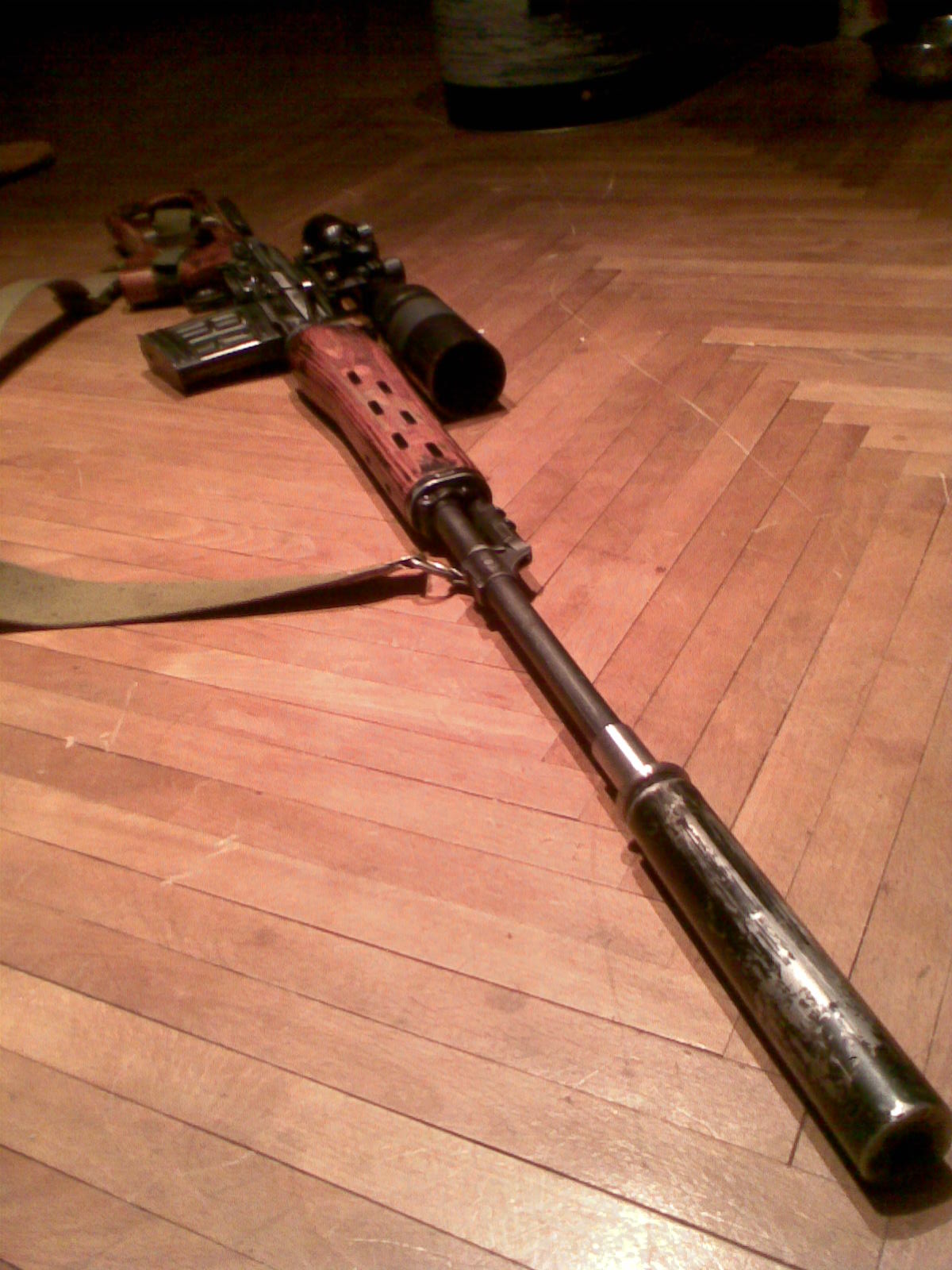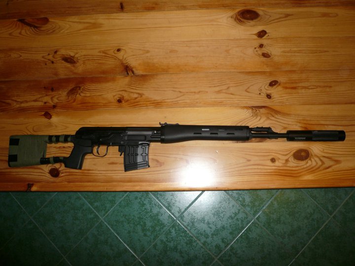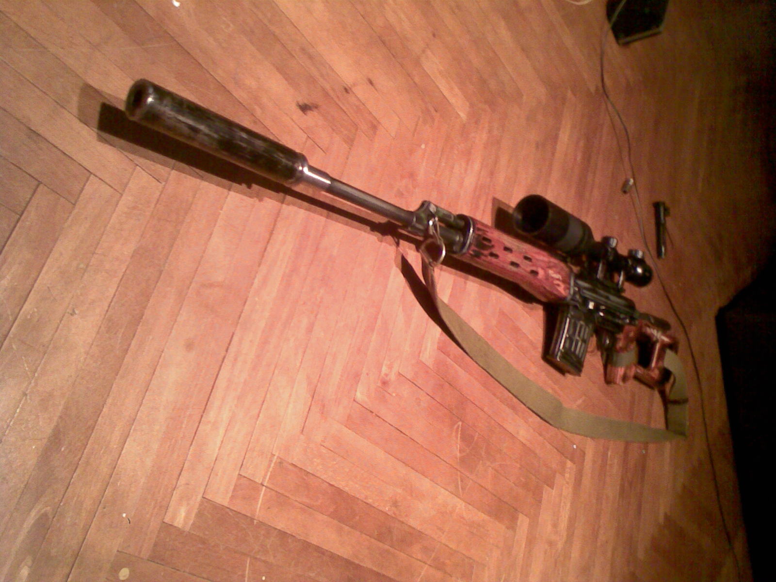 uploadnu tu jednu starší fotku,už sem to jednou zkoušel,SVD s tlumičem,mě osobně se to líbí..ale chtělo by to pořešit bud nejaky zavit na hlaven nebo upravit samotny tlumič.sice by to tady fungovalo jen jako estetický doplnek nez funkční část,ale i tak je to hezký  BTW: ty obvazy jsou už sundány a přibyla optika..je to stará fotka