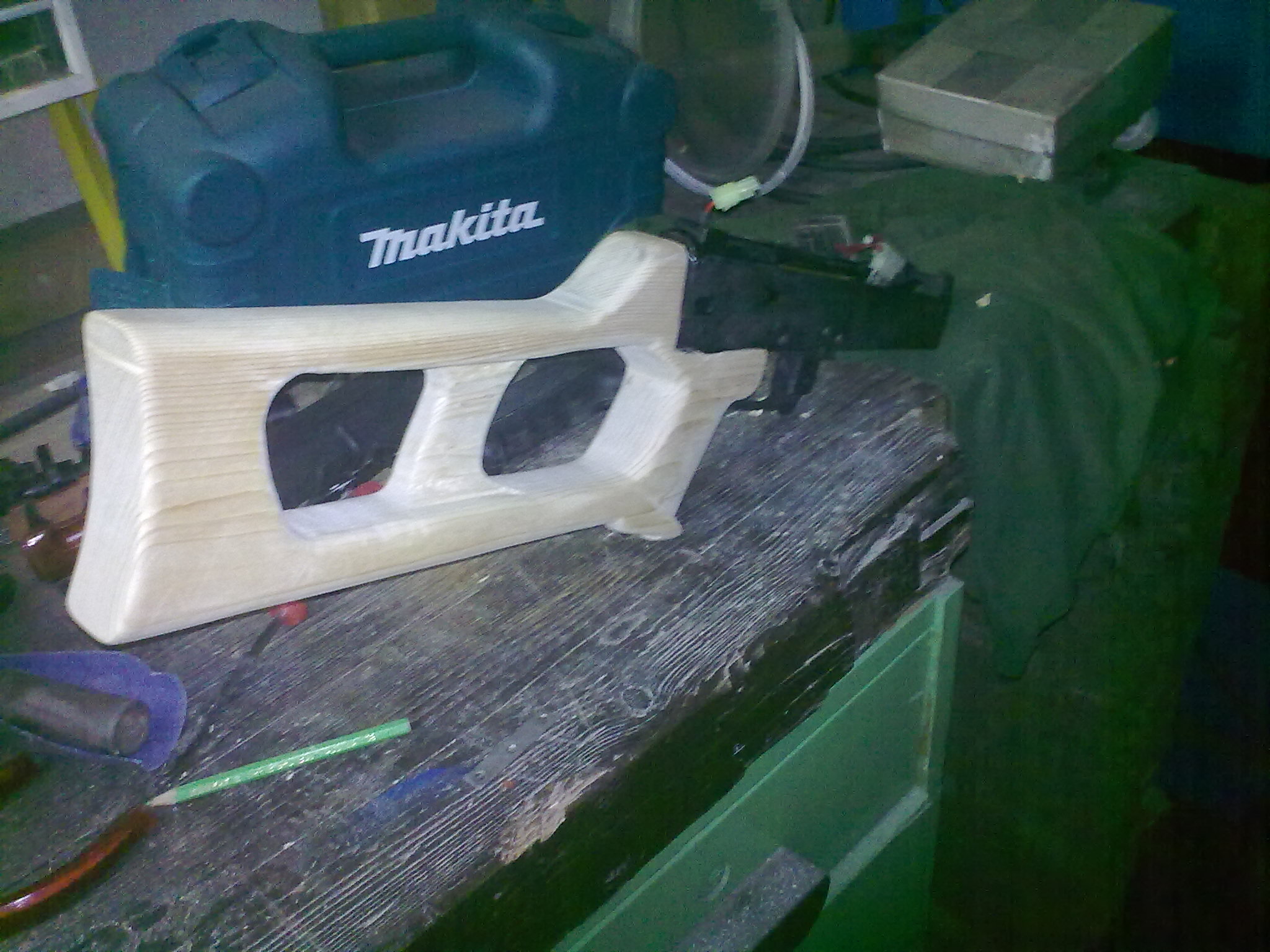 Tak tady je další postup, kompletně obroušená a vyrovnaná pažba s hotovou komorou pro motorek což bylo ze začátku docela oříšek. Příloha: