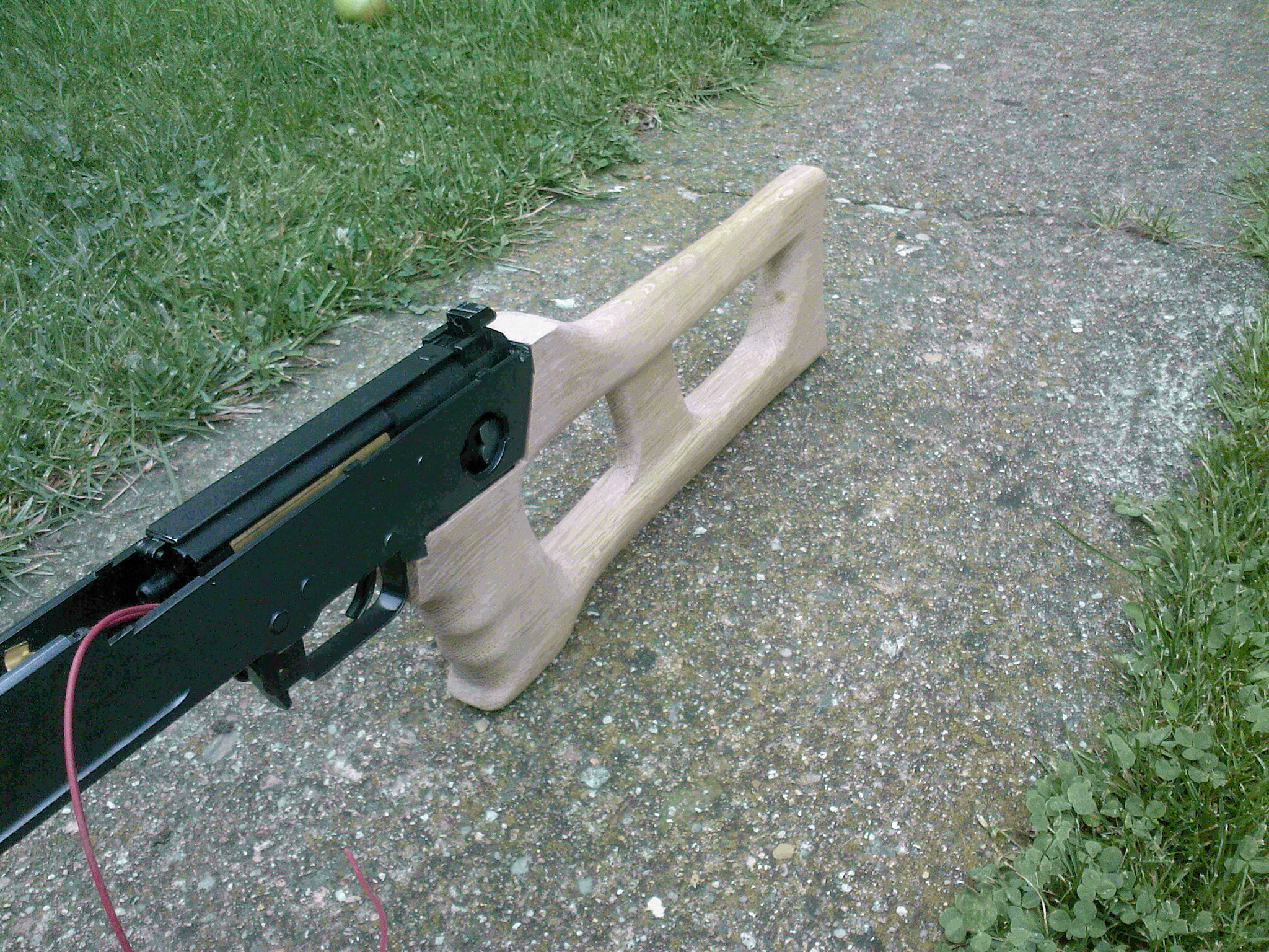 Tak tady mám svůj další postup, dneska jsem udělal dřevěnou pažbu + jsem začal hloubit komoru pro motorek což je asi nejnáročnější. Zítra bych měl dodělat tu komoru a začít dělat konečnou úpravu. Příloha: