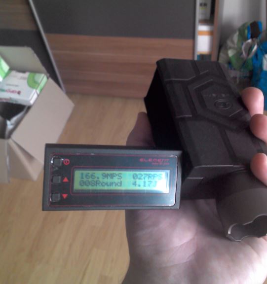 Pouze jsem musel laborovat s tryskou, piloval jsem jí pro zjištění správné délky, takže zde ještě bude nepatrná rezerva výkonu. Pružina M160, hlava válce a pístu RA, GD černá hopgumička, tryska pro zapasování původní morris 22mm, válec bez díry, hlaveň GD 6,02mm délka pro AK (délku ještě dopíši, ale z PARy cca 25mm vyčuhuje). Kuličky na chronu GD 0.20 (cca 140m/s s 0,3g) Tryska po broušení do okamžiku stabilního podávání má délku cca 21,75-21,8mm. Musím ji ještě vyměnit za soustruženou buďto 21,7, nebo 21,8mm takže výkon možná ještě poroste. Vystříleno pár dávek na akci čekám, zatím bez zádusu apod.