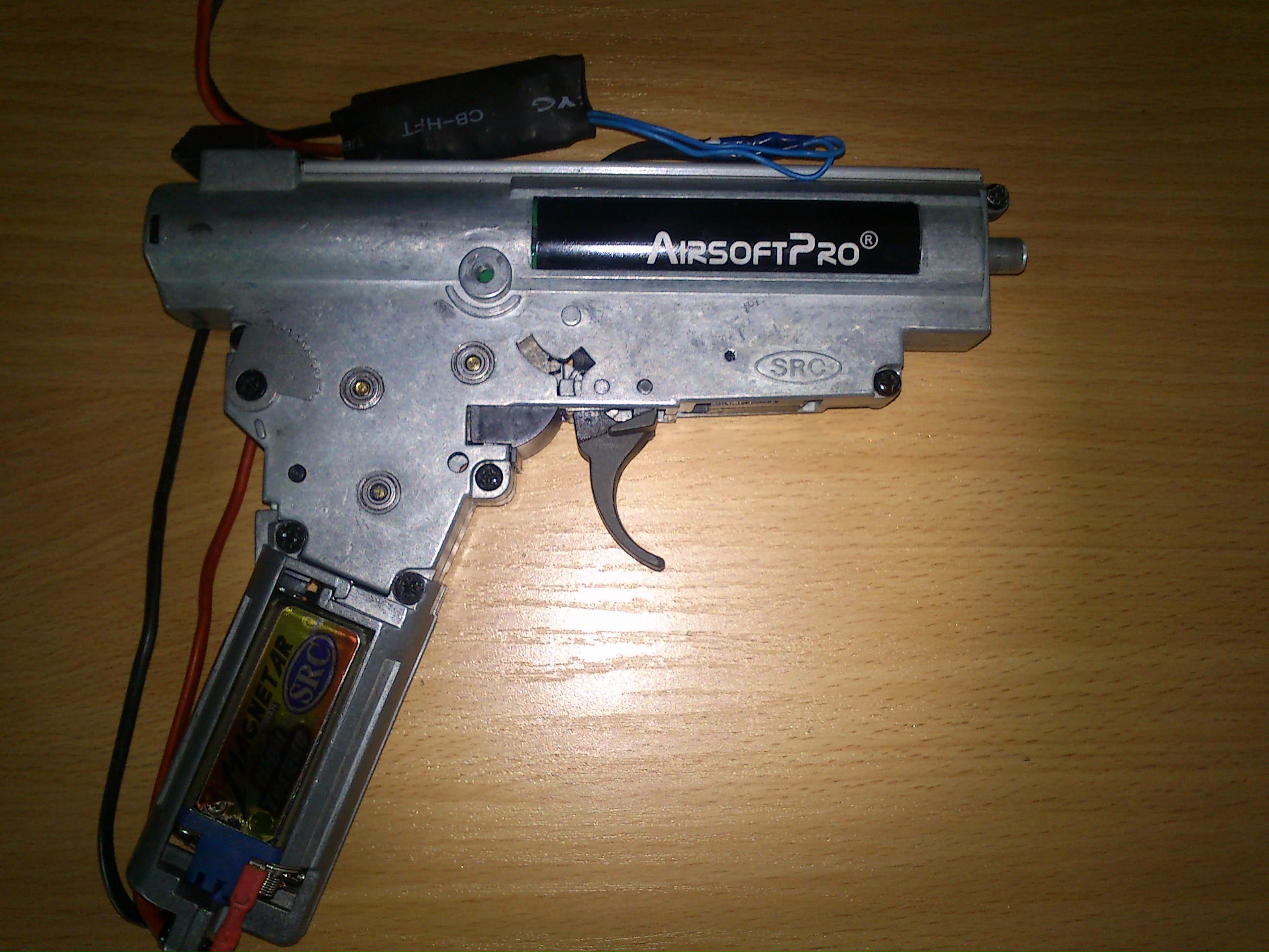 kolesa neboli skoro vobec vypodlozene. Mechabox a jeho casti boli prakticke uplne suche. Hop up komora je kov zliatina, ale pritlacne ramienko je kovove s kovovym pritlacnym valcekom. Po upgrade na 130 pruzinu airsoftpro je dostrel o par metrov (5-10m) kratsi, ako s komorou CNC hlinik ACM s plastovym pritlacnym ramienkom. Hlaven bola pouzita 455mm aimtop 6,03mm priemer ocel.