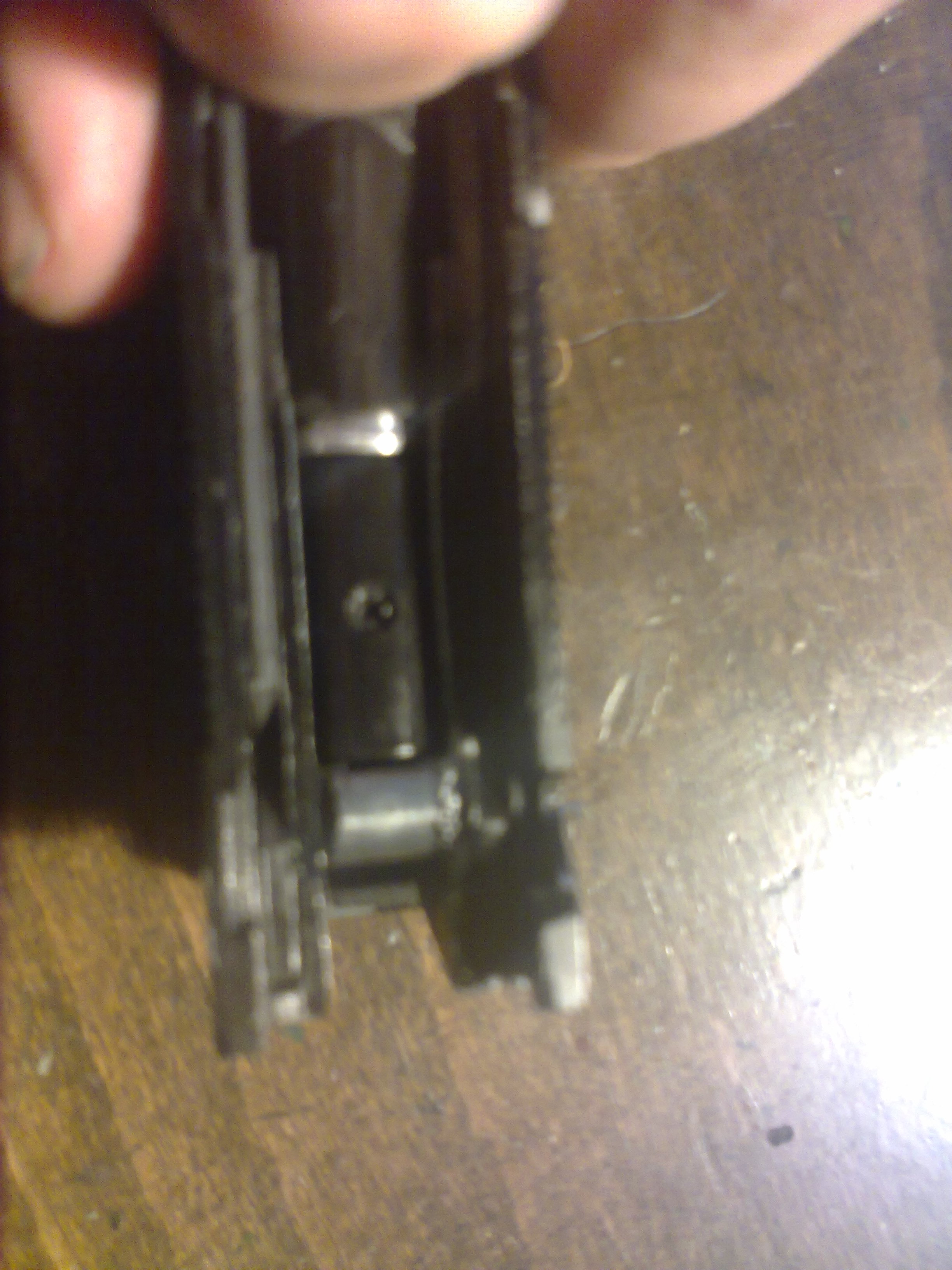 Vystřel má určitý časování. Při zmáčknutí SPOUŠTĚ dojde k uvolnění KLADIVA (KOHOUTU) to udeří na KNOCKER VALVE. Ten otevře VENTIL a dojde k zaaretování KNOCKER VALVE. Plyn je dávkován do hlavně a tlačí střelu ven. V tu chvíli, kdy střela opustí hlaveň dojde k rychlejšímu toku plynu a ten uzavře přepouštěcí ventil v nabíjecí trysce. V tu chvíli je započat proces odsunutí závěru vzad. V ideálním případě by měla zůstat tryska spojena s hlavní do té doby než doje k odpojení KNOCKER VALVE a uzavření dávkovacího VENTILU. Po té dochází k odpojení trysky, ta se během dokončování pohybu závěru vzad vrátí do výchozí polohy a při cestě zpět nabere kuličku a nabije ji do hlavně. Během tohoto procesu mohu vznikat různé závady, které mohou vést k následné nespolehlivosti za určitých podmínek. Doufám, že jsem to vysvětlil srozumitelně. Pokud to funguje není nutné to řešit, je to spíše pro hnípali, kteří se v tom rádi hrabají Takhle to má správně vypadat, ve zbrani není zásobník, trysku drží pouze HOP UP guma, zbraň mám zapůjčenou od AIRSOFT MORAVA pro recenzi, jde o WELL DRAGON 7.1 - tahle zbraň mě překvapila vysokou přesností a konzistentními výsledky, samozřejmě svoje mouchy má