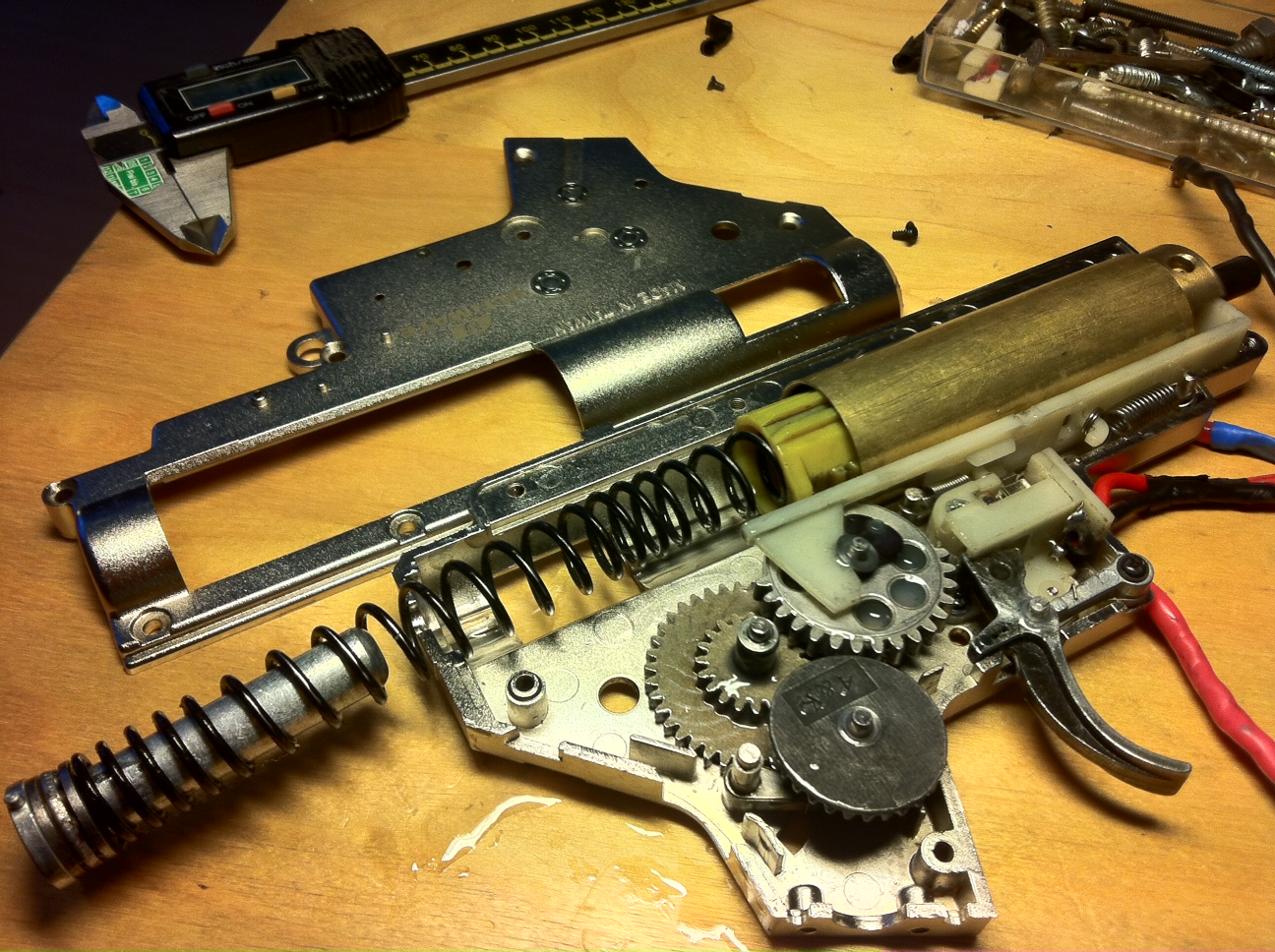 Když to budu skládat zase zpět, mám to udělat jak to bylo nebo se mám držet osvěčeného postupu? Nicméně už jsem klasický postup zkusil a píst zůstáva při jedné rámě vždy natažen z 25-50%. To bude chtít mosfet, ale nemůže to být kvůli klasickému sesazení kol? Že bych je tedy vrátil do stavu jak byly při rozebrání. Koupeno od Airsoftpro komplet složený mech.
