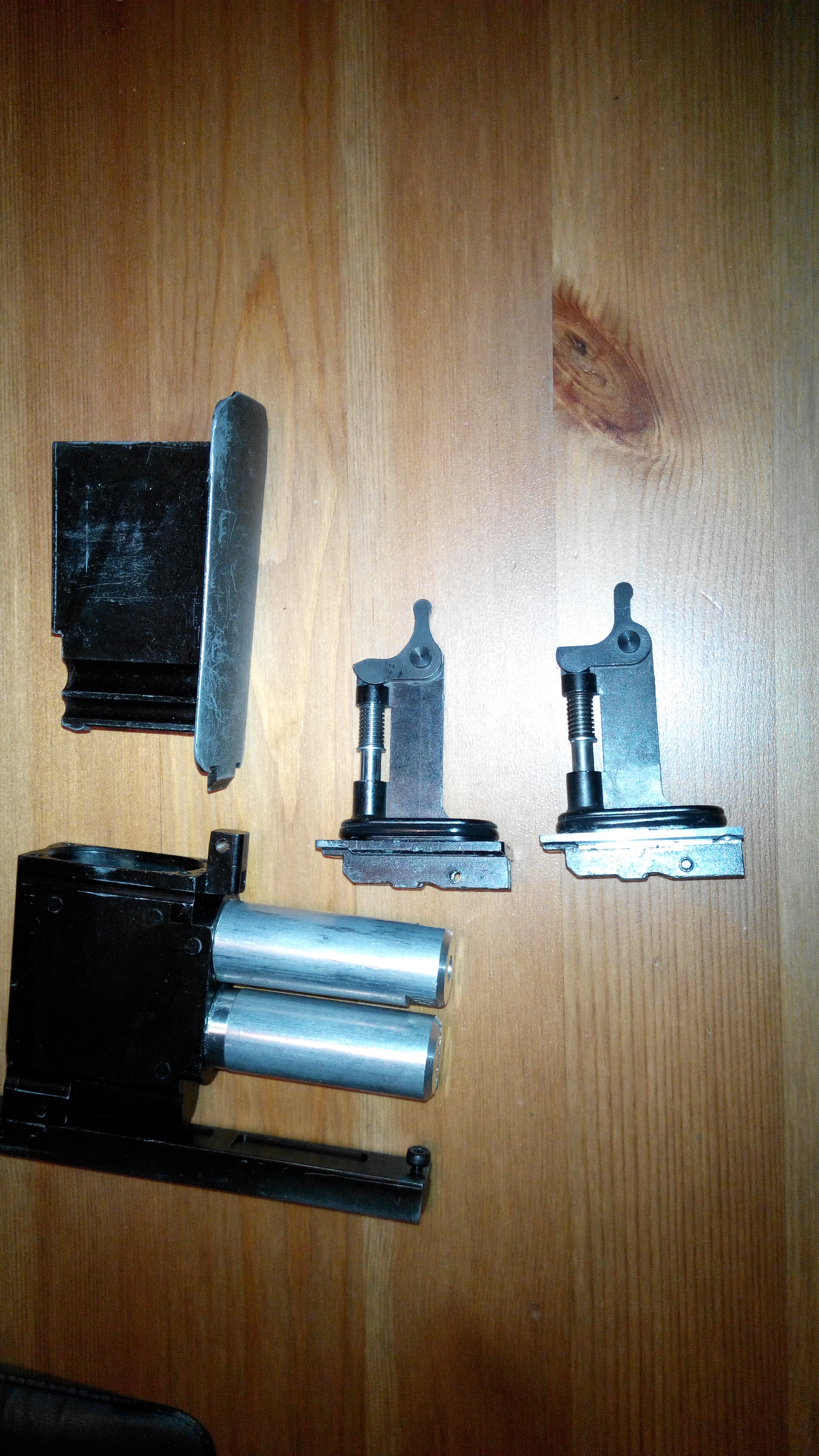 Dnes jsem zkoušel dát G&G set do dlouhého zásobníku z tanaky L96. Našel jsem dost informací, že montáž setu není možná. Po rozebrání je zjevné, že mechanizmy jsou totožné. Vnitřek z krátkého zásobníku s G&G setem jsem celý přehodil do dlouhého zásobníku a vše fungovalo naprosto v pořádku. Jediné co je jiné, tak tloušťka stěn, zásobník už byl nafouknutý.