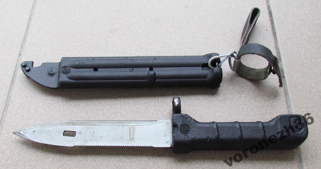 No to bys mě nakrk. Máš na mysli stejný, "plum" černý nebo černohnědý na 74M ? Nebo máš ještě starou hnědooranžovou verzi AKM/early 74 ? Tam by ta cena i dostupnost odpovídala, těch je tu dost. (ruský, jugoslávský, polský atd...) Pokud máš ten samý "plum" na 74M, tak: Téměř stejný jsou bulharský, tak se mrkni, co to máš. Rus z Izmashe: http://tantal.kalashnikov.guns.ru/bayo5.htmlBulhar: http://www.onesourcetactical.com/bulgarianakbayonet-black.aspxA pokud máš z Izmashe tento "collector" ... tak ten je jen na výstavku do vitríny: http://www.izhmash.ru/eng/product/kni_suv.shtmlD.