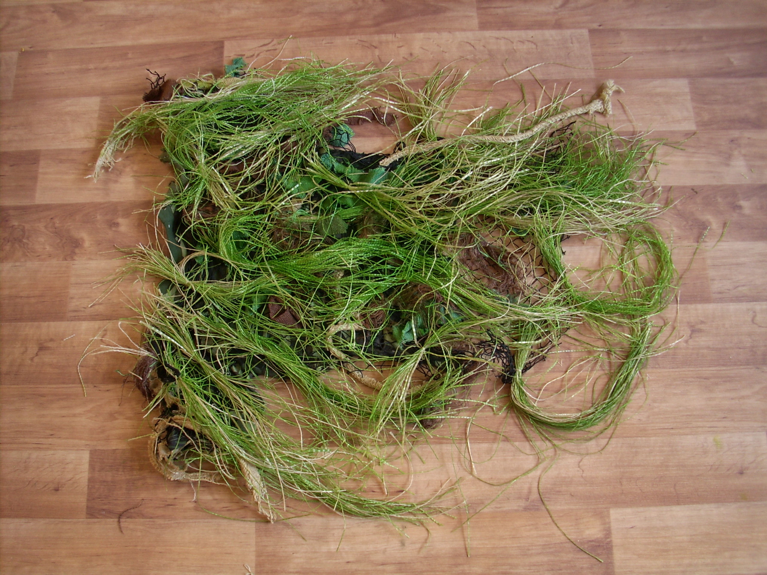 Já osobně na hejkala spotřeboval okolo 22 metrů čtverečních juty, většinu časem otrháš v lese, tak je potřeba furt dodělávat. Už se stalo tradicí že po každý akci to přivezu domu potrhaný. Někdy se v tom najde i dost zacuchanejch věcí. Co se týče maskovací síťě, je to ta nejlepší volba.