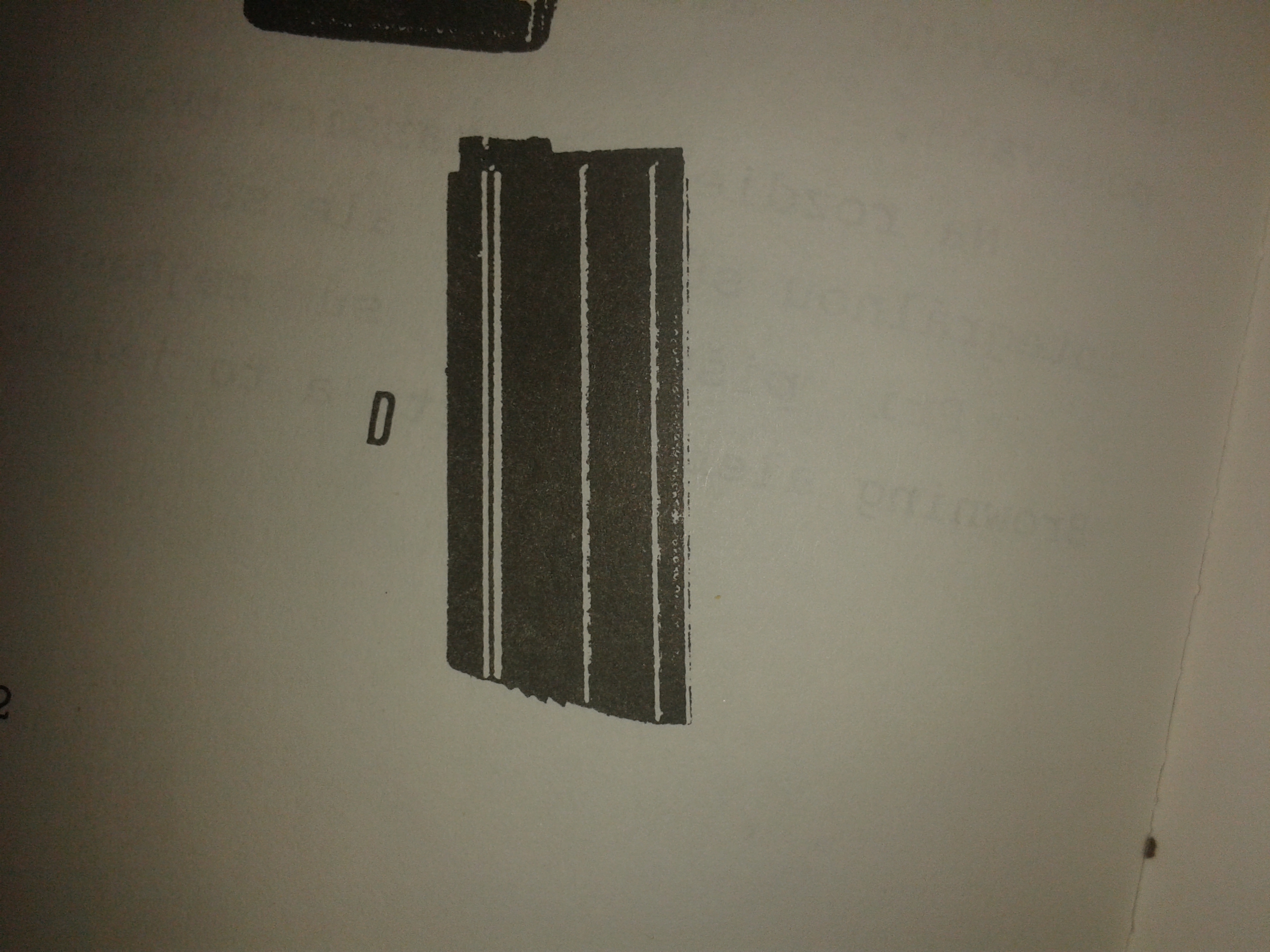 . Na tom by nebolo nič čudné, ale ono je! Ihneď ma trklo že to je airsoftový zásobník na m16 z vietnamu. Je to na prvý pohľad jasné, vďaka vystupujúcej časti z vrchu. No pri ešte bližšom preskúmaní som si všimol koliesko s ozubmi na spodu zásobníku. Takže je to vlastne točäk. Ale zaujímavé je to tým, že kniha je prvé vydanie z roku 1994! V roku 1994 už bol airsoft na takej úrovni, že už boli točné zásobniky? Preto vás skúsených airsofťákov prosím o vysvetlenie, o čo tu ide. Viem že tá fotka je tam umiestnenä z netu, čo tam možno dal dajaký japonec v roku 1994 ale aj tak mi to vŕta hlavou.