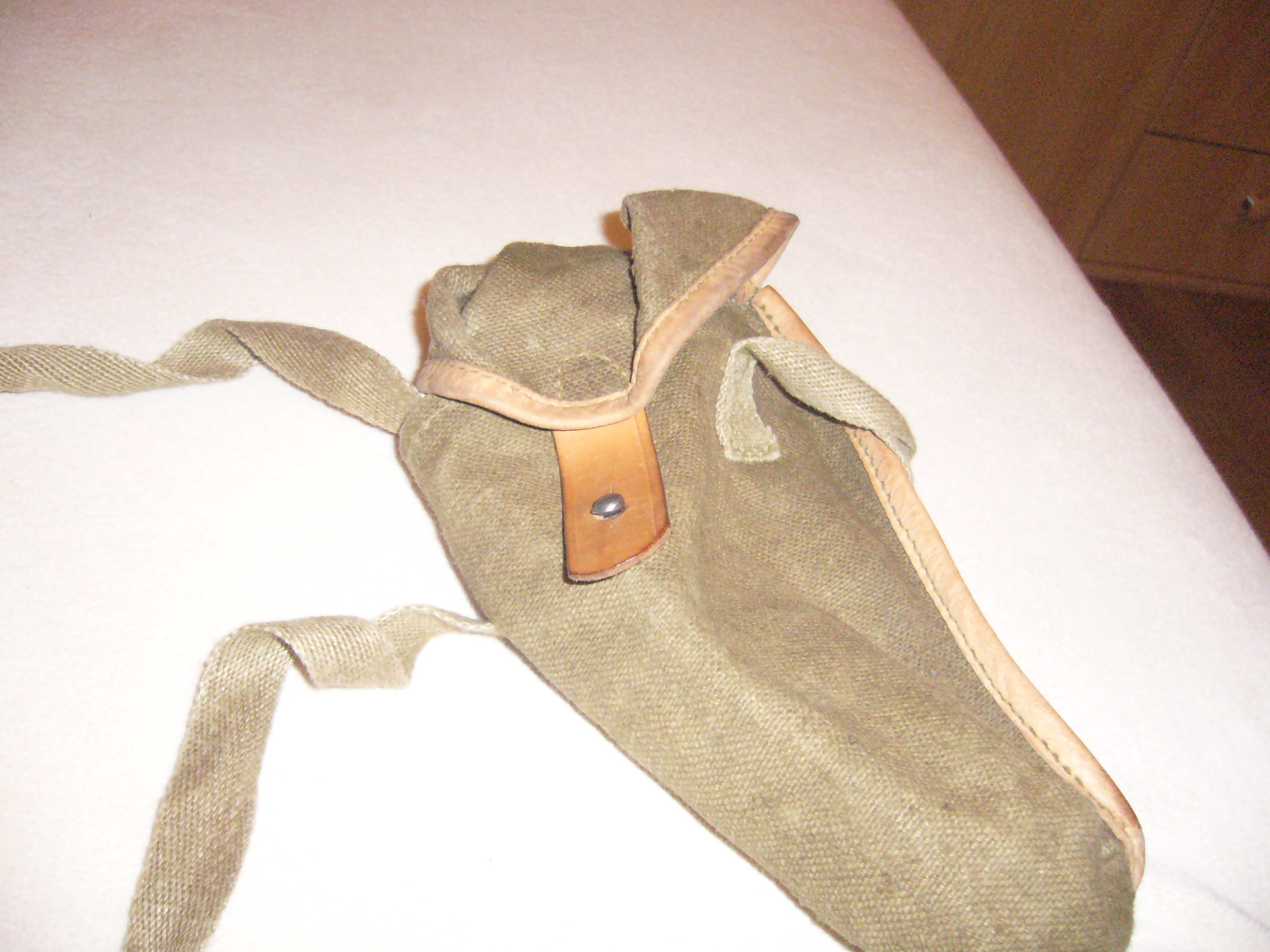 Jedná se o starší typ vaku na plynovou masku, pak byl typ ještě s jednou přihrádkou jako psal deacon a pak ty pogumovaný. Tyhle starý se pak prej ještě lišili různejma knoflíkama.