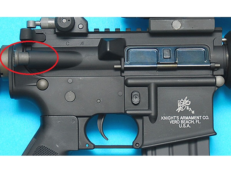 Nečekaně na doražení závěru  U AR15 se vyskytuje, resp. vyskytoval problém, že se občas závěr úplně nevrátil a zbraň se tudíž zasekla, tahleta sranda umožňuje ten závěr do správný polohy prostě ručně popostrčit.