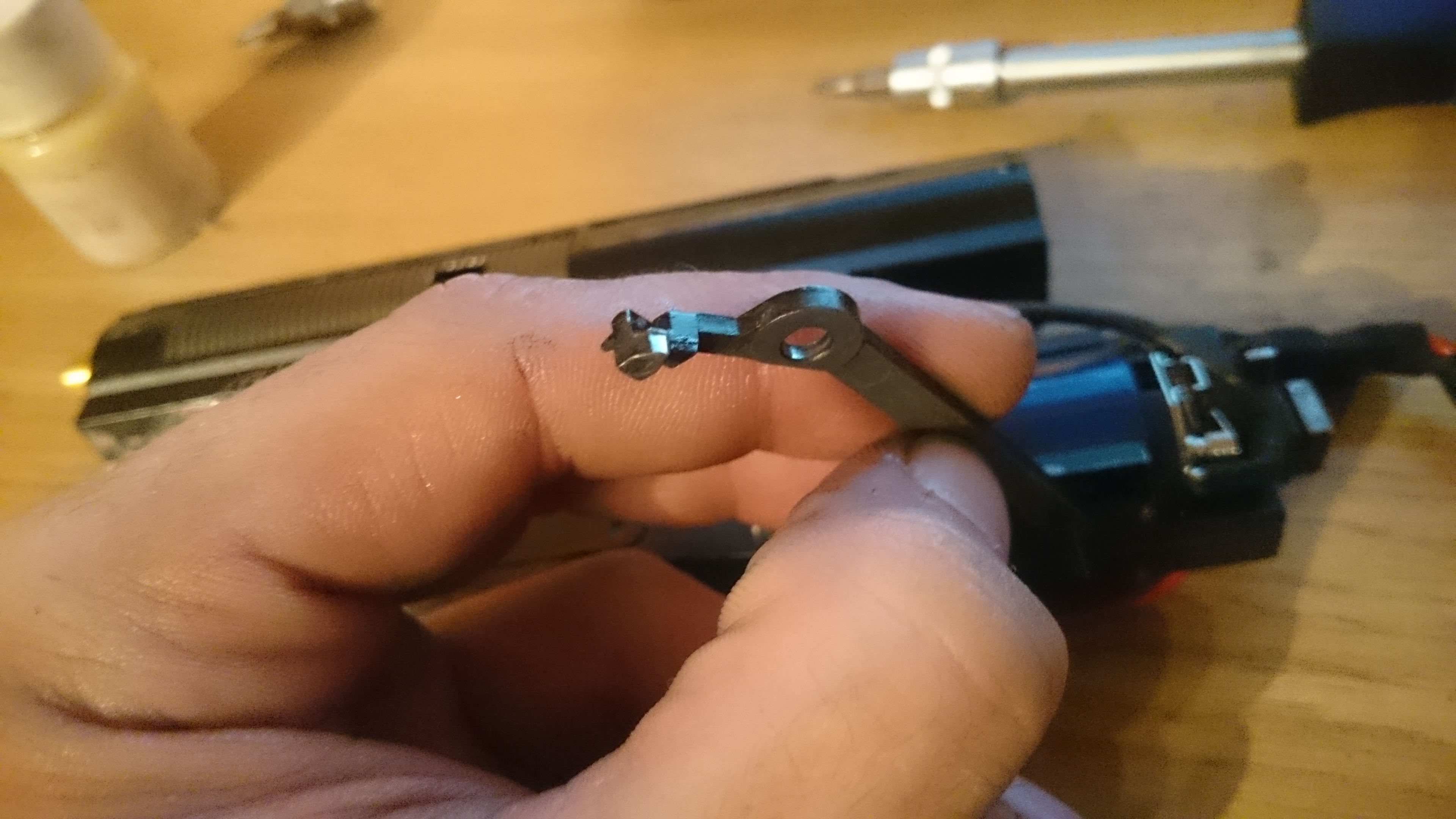 Skúšal som vymeniť ten prerušovač, nefunguje to stále úplne ideálne, skúsil som vypnúť funkciu "rýchly výstrel" a aktívnu brzdu som dal najväčšiu intenzitu, rýchlosť motora som znížil o 30-35% a ako tak to funguje - každý 4tý výstrel dá dve rany. Na iných fórach som sa dočítal že celkovo tie P90tky (gb. v6) majú problém so semi streľbou.