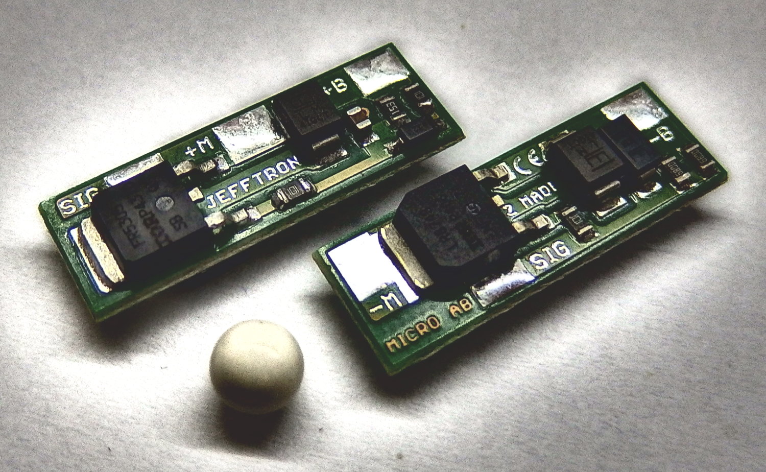 Na fotce je porovnání velikostí nové Mikro aktivní brzdy s podobně velikým Mikro mosfetem, Mosfetem a Aktivní brzdou. Vše od firmy JeffTron