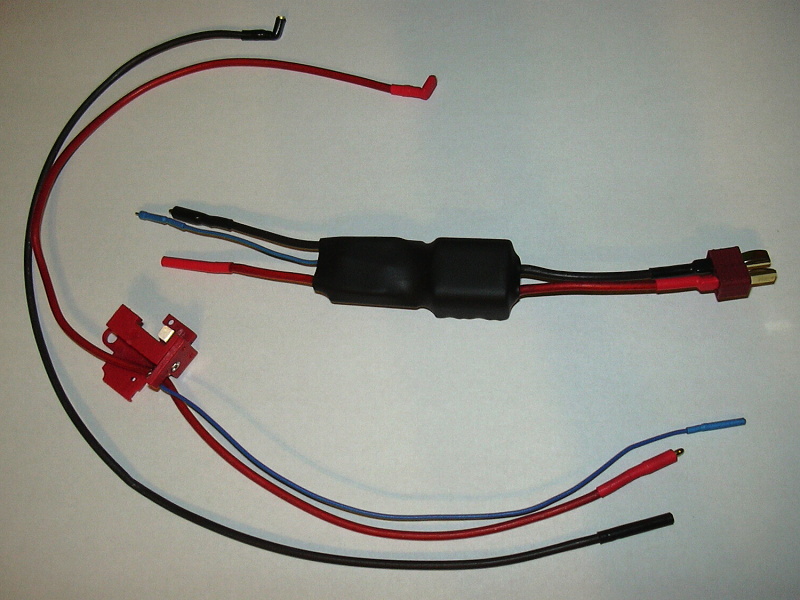 Použitý materiál: 1 * Extreme mosfet s univerzální kabeláží = 757 Kč 1 * DeanT konektor - samec = 15 Kč 1 * Faston dutinka 2,8mm - 2ks = 8 Kč 2 * Bužírka 3mm černá - 2 ks = 8 Kč 1 * Instalace do zbraně = 120 Kč ----------------- celkem = 908 Kč