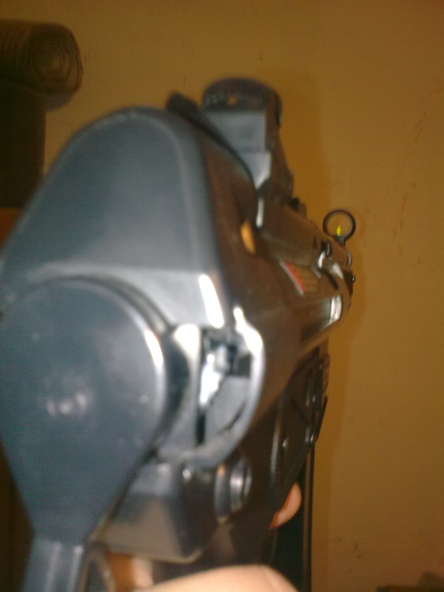 Další upgrade(jak pro koho) je odmontování kolíku(je to taková pružinka a kolík, ale jde to zase přidělat) , co drží pažbu ve zbrani tak, aby nešla vytáhnout,když je mezi dvěma polohami-zasunuto, vysunuto. Pažbu jde zafixovat zasunutou nebo vysunutou. Jinak jde vytáhnout. Výhoda tohoto upgradu je, že máte MP5 s pažbou, která jde nosit buď zasunutá, nebo vysunutá. Hlavně ale jde oddělat.Kdykoliv, kdekoliv, snadno odděláte a přiděláte. Oddělání pažby používám v případě CQB a hlavně při boji na metr. Ta MP5 je totiž tak „dobře“ navrhnutá, že pro člověka , co má větší ruce není držení zbraně se zasunutou pažbou moc pohodlné, téměř nemožné. Bez pažby ale není možné střílet efektivně a přesně rychlopalbu(natahuju a mačkám rychle spoušť, mířím podle toho, kam dopadají kuličky), ale zase nemusíte vystrkovat celou ruku a v budově, nebo v malém prostoru se s ní lépe manévruje. S pažbou je to zase lepší na delší vzdálenosti. To pak se zbraní jde střílet podle dopadajících kuliček a hlavně se nemusí tolik mířit. Jakmile se naučíte mířit celou zbraní, máte vyhráno. Samozřejmě, že s pažbou se zvedne i přesnost rychlopalby. Nejlepší je našroubovat si tam sklopnou pažbu z MP5 PDW nebo MP5A5, k čemu se časem dopracuji.