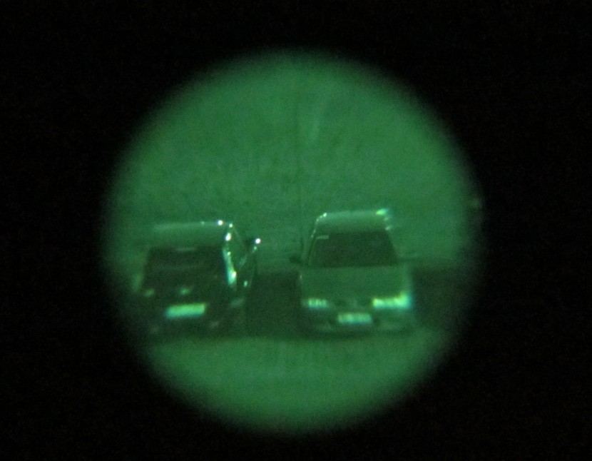 Na přiložené fotografii s automobily můžete vidět obraz, který byl pořízen přes Yukon za měsíčné noci (tedy s dostatkem světla) na vzdálenost asi 15 metrů. Přísvit nebyl použit.
