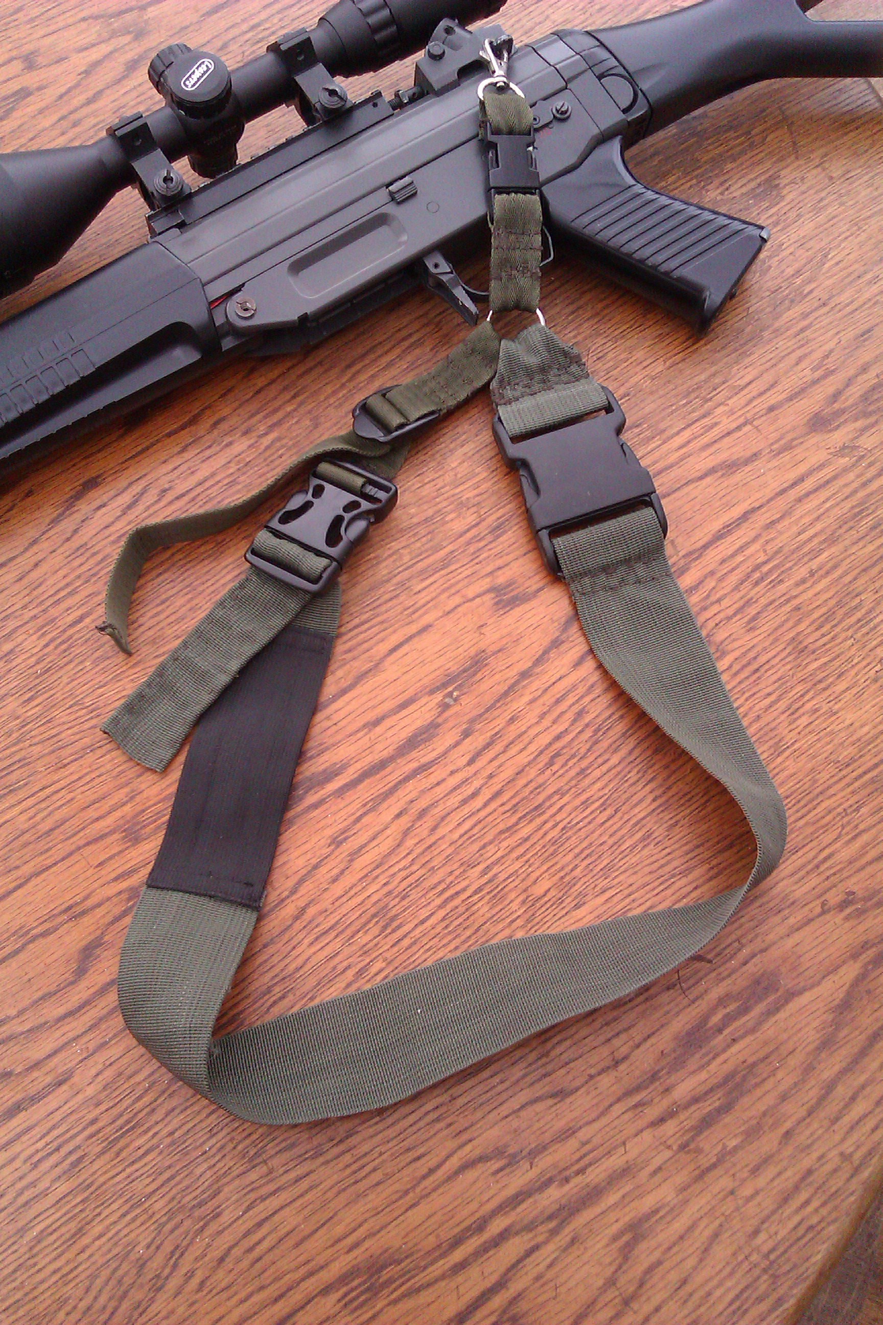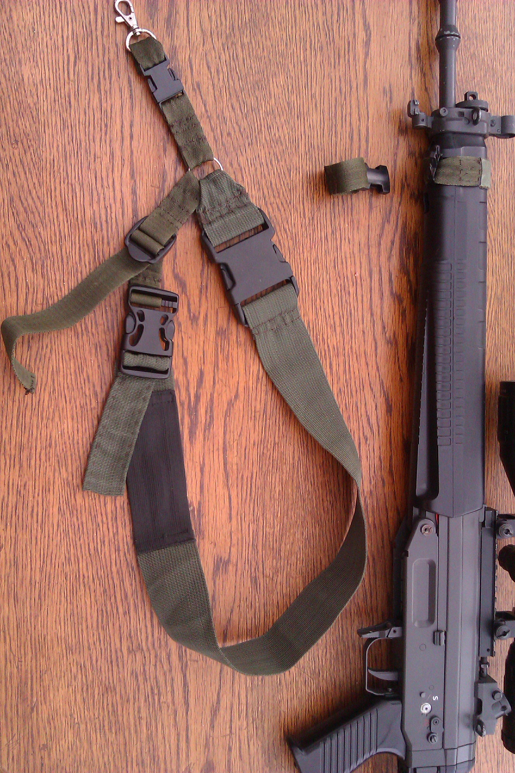 Taktiež uvažujem momentálne aký popruh na SIG 550 kedže poslednú dobu hrávame kombináciu OSB/CQB ihriska a dosť často chodím do CQB zo záložákom a nechávať primárku opretú o stenu je hovadina... Preto by mi vyhovovalo najskôr nejaké riešenie ako si ho hodiť na chrbát aby som mal dobrú pohyblivosť a niejako ma to neobmedzovalo + nerezalo do krku kedže už teraz má 4,7 Kg s optikou..... (1Bod som skúšal ale vadí mi keď sa zbraň húpe medzi nohami pri chôdzi , nedajbože pri behu....) Ideál by asi bolo niečo podobné ako už spomenuté ? http://www.youtube.com/watch?v=vi1biiR_DqI S tým že by som nemal problém hlaveň zbrane prichytiť o Molle väzbu na nosnom systéme .... Pokúšal sa preto niekto o niečo podobné a mohol by mi napísať skúsenosti než sa do toho pustím ? ( prípadne nejaké vychytávky o ktoré by sa mohol podeliť) Najviac by asi potešili ešte fotky. Vďaka za odpoveď. EDIT: Základ toho popruhu je v takejto podobe? Příloha: