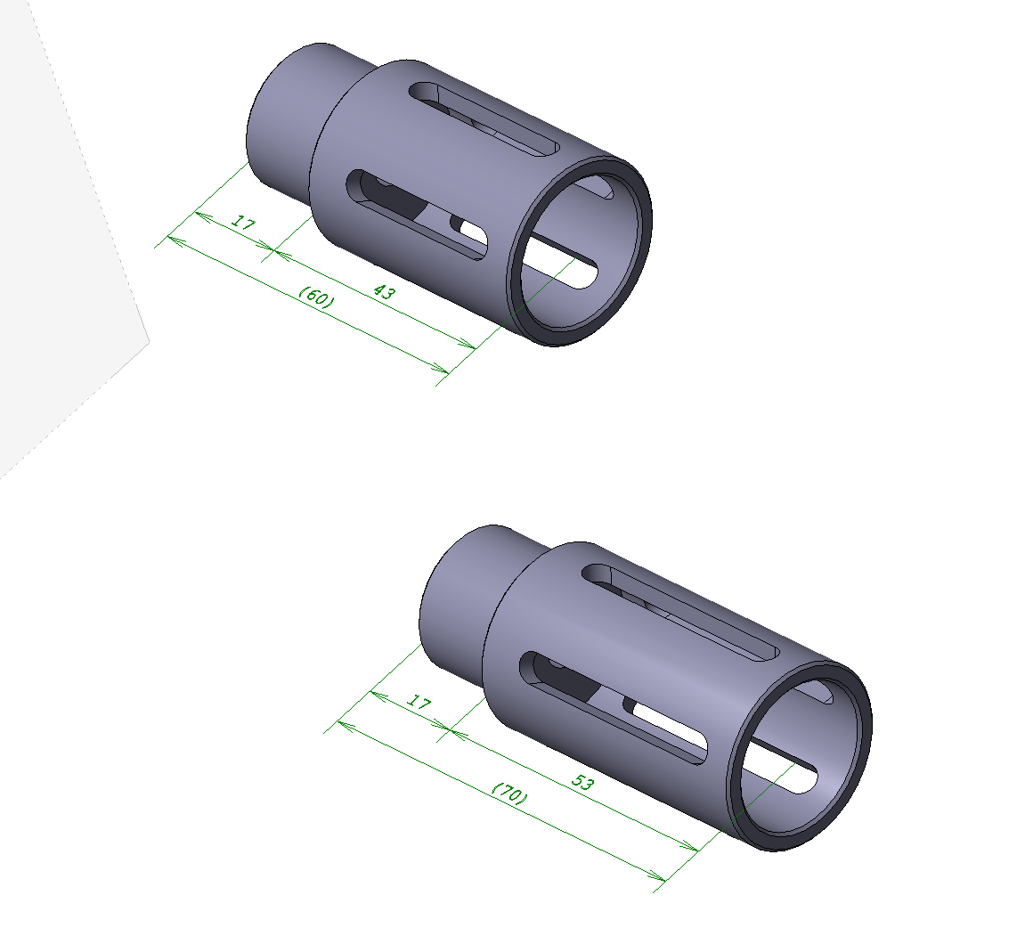 Tak to záleží vše na tom flashhideru, že jo  - Nejvíc ideální je udělat si svůj custom flashhider - co nejvíce podobný reálnému na Mod 1... Aby se nesáhlo do zbraně vůbec, ideální by bylo udělat jen nástrčnou koncovku na těch 19mm, co má ústí tlumiče (samo těsnou). To by bylo bez zásahu do SRka, jen odřenej brynýr na špičce. - Varianta dva je sehnat dost masivní flash (o čemž pochybuji) a stočit ústí hlavně na závit - tj. M14x1 tuším. Bylo by to "variabilní" na tlumič (jak base tak jinej) a defakto jakoukoliv koncovku. Každopádně konec hlavně bude znehodnocenej. Osobně zkusím variantu 1) a pak ukážu výsledek, až bude hotovej... Ale netuším kdy se na to dostanu. Každopádně výkresy / model problém nebude.