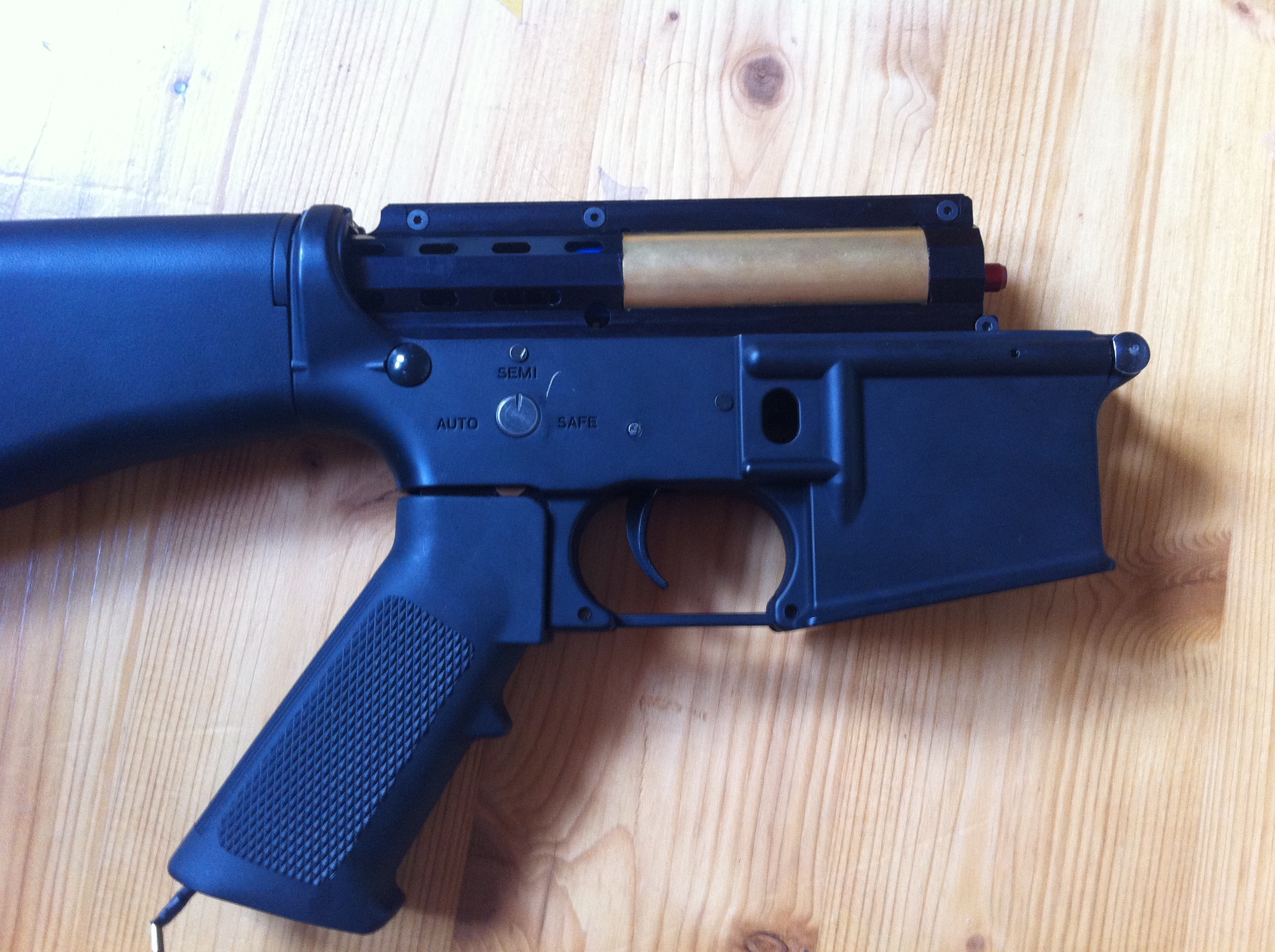 No střílí to, ale ne tak jak by mělo, vypadá to že ten mech je přecejen vůči komoře/hlavni lehce křivě (opravdu jen lehce, tryska si do komory při skládání zajela jak po másle), ale když si do komory posvítím baterkou a koukám hlavní dovnitř tak to trochu křivě je. Takže na to kašlu a dám jiný tělo, tohle od Cymy si nechám na Cyma mechabox s kterým si to hezky sedí na nějaké CQB s 90tkou pružinou. Teď otázka pro Vás -> co byste (ideálně podle zkušenosti) volili raději? 1) (Aimtop tělo) http://airsoftpro.cz/eshop/product_info ... ts_id=11792) (shs tělo) http://www.airsoftguns.cz/kovove-telo-m ... m-colt-shs3) (Dboy - sice taky čína, ale není to cyma) http://www.airsoftguns.cz/kovove-telo-m4a1-d-boys Osobně jsem pro Aimtop/SHS, ideálně GP, ale to je nový drahý zbytečně a použitý jsem nikde na bazarech nesehnal.
