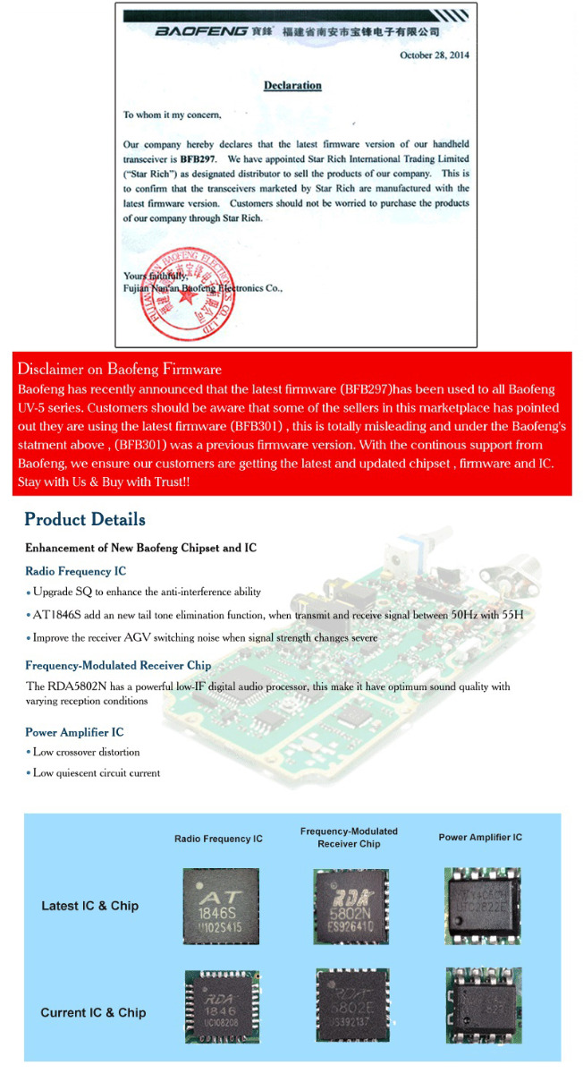 Já teď koupil modernizovanou verzi Baofeng UV-5R s "černým displejem" a jinou anténou kolegovy v týmu. Nová verze má krom zmíněného jiného displeje (mimochodem paráda!) i nové hlavní čipy (viz příloha) - programování ale funguje s původním programem bez problémů.
