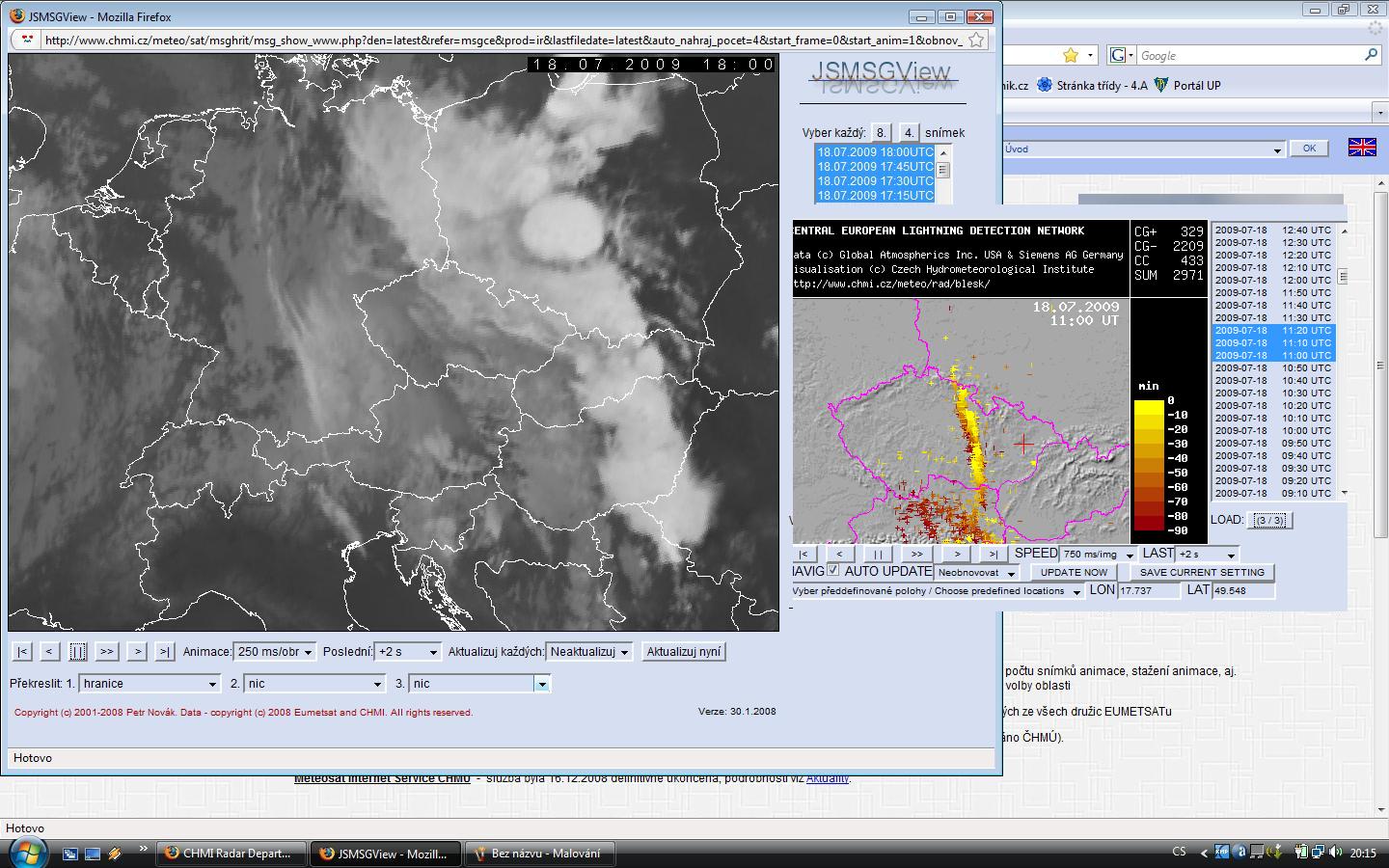 Tady posílám screen-shot oblačnosti z družice + pásmo bouřek dříve toho dne. Připadá to ještě někomu jako polovina lebky? Někdo se na nás asi ten den trošku nazlobil