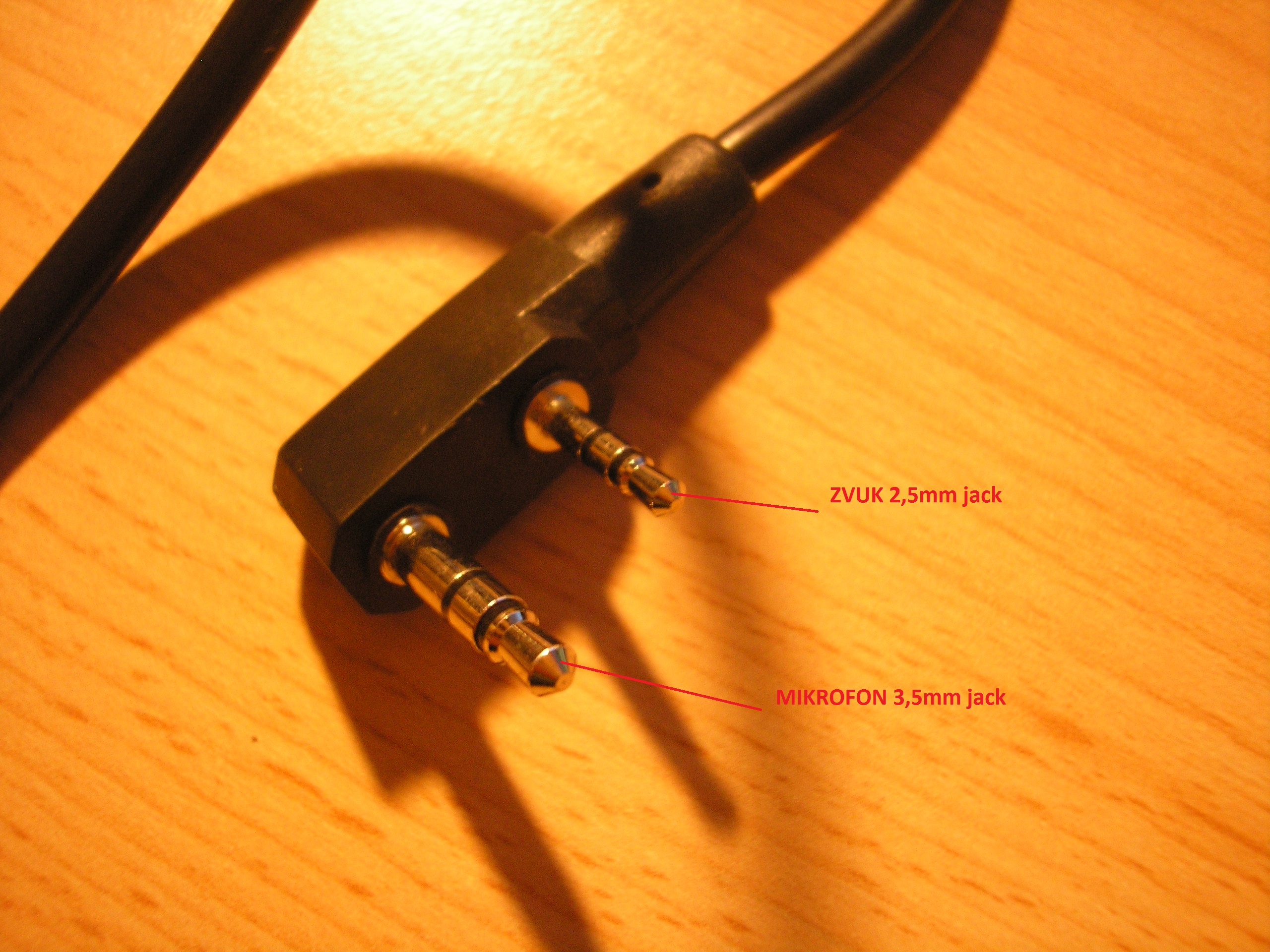 Zdravím, jak již název napovídá mám problém se svým headestem. koupil jsem si headset http://www.zamerovac.cz/takticky-headse ... g10ibp5i26 s tímto kabelem http://www.zamerovac.cz/spinac-u94-ptt- ... 49573.html , jenže jsem zjistil, že to má přehozené dráty. Ve vysílačce je pro příjem zvuku určen 3,5 mm jack a pro mikrofon 2,5 mm. Kdežto na kabelu je to obráceně. Rozebíral jsem to a vypadá to, že by stačilo pouze přepájet některé drátky, jenže já absolutně nemám zdání, který je který. Poradí mi někdo které prohodit??? Předem díky za rady a nápady