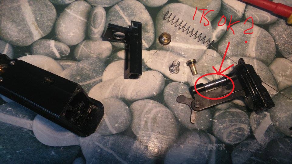 Nejak mi neni jasná tá 3tia foto?Ako ti to drží natiahnuté bez výstražníku? A na poslednej už to máś rozobrané.Pri rozoberaní záveru sa mi nikdy nestalo že by záver ostal"natiahnutý" Ako si teda vlastne vybral výstražník? Hentak ti to zo zbrane proste nevyleze, nezaseklo sa ti to tam tak dodatočne?..z tvojho popisu fakt nechápem na aké možné problémy narážaš. Inak pružina o.k má mať okolo tých 70 mm. Zásobník máš zle, pružinka musí byť zaistená závlačkou. Viď foto