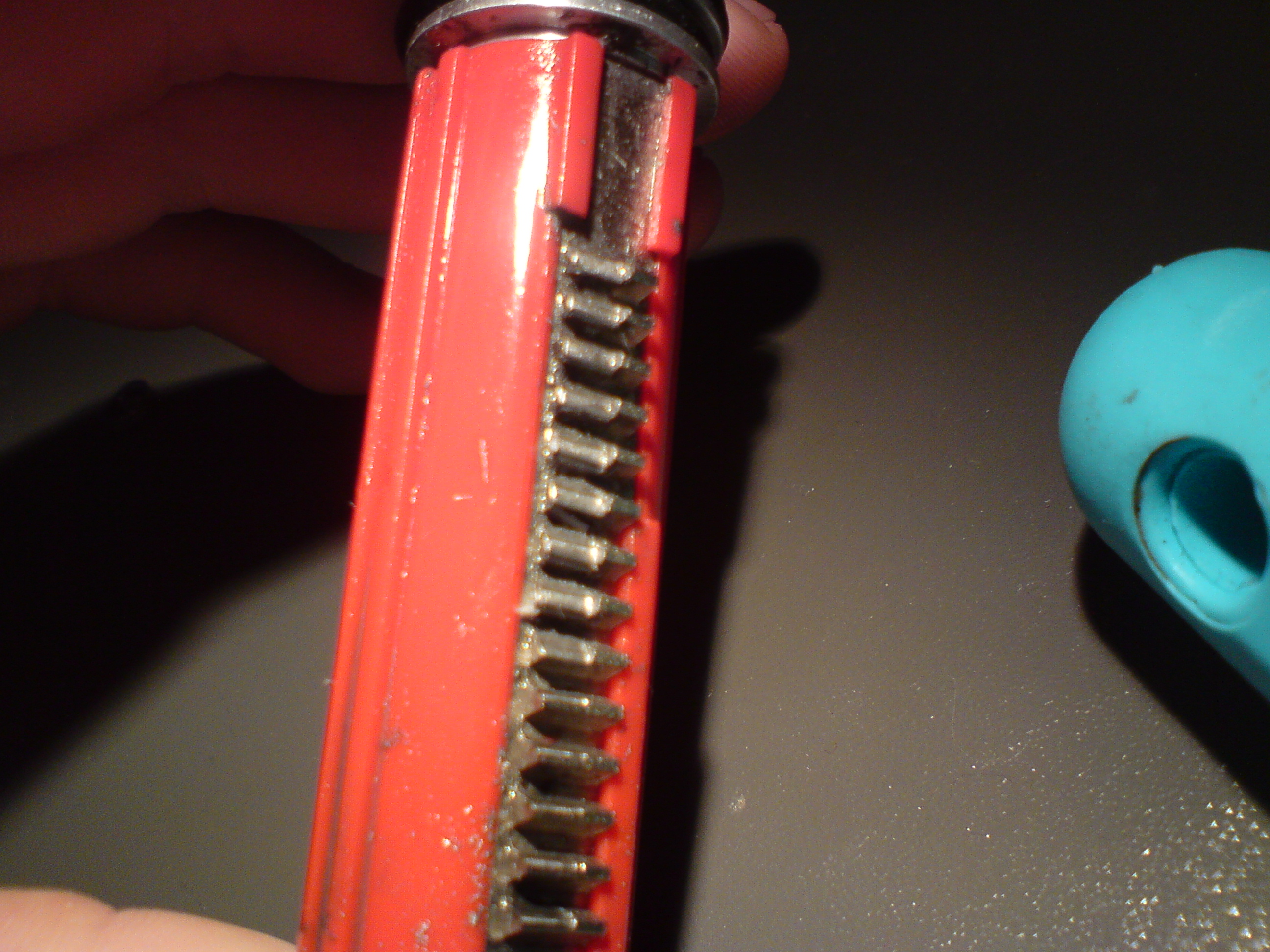 Nedávno jsem do svojí zbraně dal 130tku, když jsem ji občas rozebral kvuli kontrole, tak jsem zjistil, že se u pístu zbrusují zuby a tento víkend se úplně zbrousily. Následkem bylo, že se vylámali zuby u středového a motorového kola. Proto se chci zeptat, jestli někdo nevíte čím by to mohlo být. Mám mosfet a baterku 9.6V, takže je to poněkud rychlé. Jinak ve mechu mám toto: superzátěžové kola od CA http://www.armymarket.cz/sada-kovovych- ... e-ca-d0497motor infinite torque-up od GD http://www.armymarket.cz/motor-dlouhy-zatezovy-gd-d1201 pružinu 130 od GD http://www.armymarket.cz/pruzina-m130-gd-d0454píst celokov zuby od elementu http://airsoftpro.cz/eshop/product_info ... cts_id=758niklovaný válec od guruupgrade http://www.guru-technology.cz/cs/dily-p ... 16-aug-125hlavu pístu z dvojtym těsněním od guruupgrade http://www.guru-technology.cz/cs/dily-p ... m-tesnenimtrn, hlava válce a tryska jsou původní