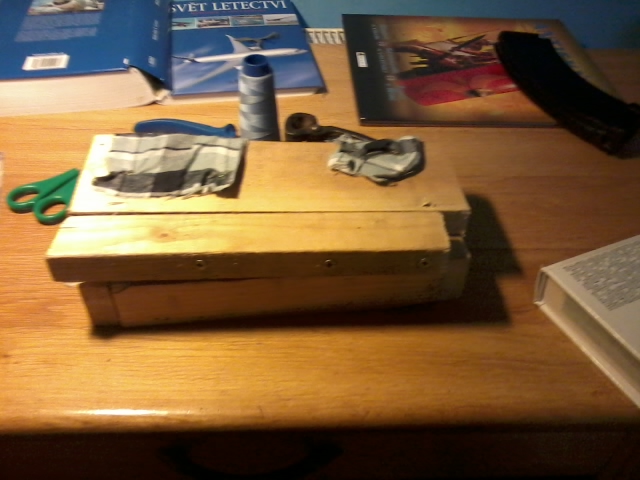 Dlouho jsem scháněl návod jak si levně vyrobit minu, a jelikož jsem nechtěl používat petardu, tak jsem začal hledat na internetu. Našel jsem minu, která funguje na principu dvou pastiček na myši. co je potřeba: nějaká prkna o zvolených rozměrech, 2 pastičky na myši(lepší jsou větší), hřebíky, vruty, jehla, nit, panty (dají se nahradit látkou přidělanou místo nich) Jako první si sestavíme krabičku, která bude obal miny. Vezmeme prkno a uřízneme ho přibližně na délku dvou pastiček na myši( je lepsi si nechat par cm jako rezervu).Prostor v krabičce má být přibližně stejně vysoký jako je natažená pastička. poté pastičku přeřízneme na polovinu a necháme si tu s pružinou. Ty připevníme na dno krabičky tak, aby v nenatažené pozici koukal drát (který normálně zabijí myš) ven.K drátu přišijeme látku tak, aby byla napnutá když jsou dráty přesně v polovině úderu. Doprostřed látky připevníme malou nádobku, kterou naplníme kuličkami, hráškem nebo prostě tím, co je poruce. spouštěcí mechanismus vyrobím pomocí silného drátu ohnutého do tvaru u. ten vsadíme do dvou vyvrtaných děr, jedné ve poklopu a druhé ve sťeně krabice. pak jen přidáme náplň kuliček a natáhneme pastičky. nádobku uzavřeme a od zavíracího drátu navedeme provaz navedeme provaz.
