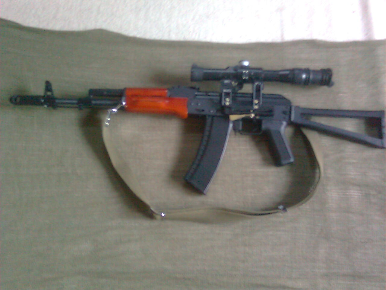 Daimler píše: Chjo, další, co do AK-74 cpe zásobník z AK-47 . . . Kurňa chlapi to nevidíte, že se ty zásobníky liší zahnutím, kvůli rozdílnému střelivu ráží 5.45 / 7.62 ? Stará 74-ka se dřevem má mít méně zahnutý hnědočervený plasťák z polymeru. Jinak pěkný ''dřívko z Afghánu''. me osobne se ze vsech zasobniku libi jenom ty od 47ky, ostatni jsou pro me hnusy.. jinak mam M15A4 Tactical Carbine, upgradoval jsem ji s tatou asi tak pred 4 rokama  je tam novej hop-up (co vim, tak rikal neco o Maruice), hop-up gumicka Systema, presna hlaven, M110 pruzina a je na ni kolimec od CA, ted nekdy planuju dalsi upgrade.. sekundarku mam USP a Glocka, ale spis USP, upgrade zadnej, ani ho neplanuju, napsal jsem o ni i recenzi i srovnani s Glockem, takze pokud nebudete vedet co, zkuste si to precist