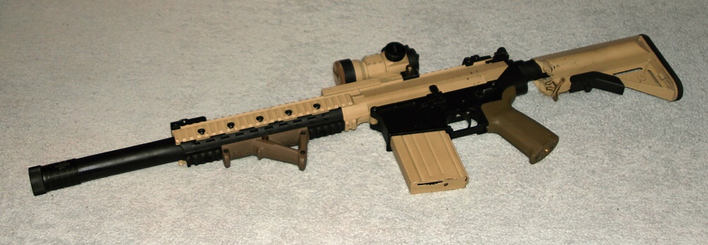 Neuvěřitelně nádhernej kvér.. :O kdyby si doladil tu pazbičku a tu kravinu od magpulu do stejně barvi tak je to komplet úchvatný. Ale stejně jeden z nejhezčích kvérů co sem kdy viděl.