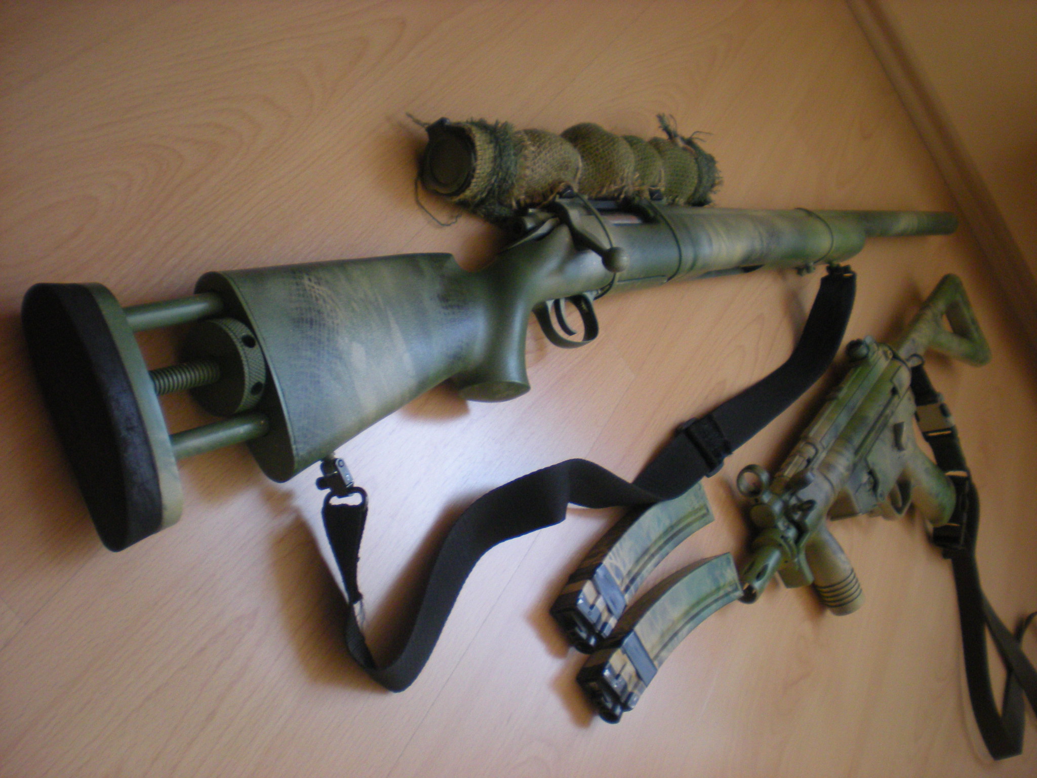 Během posledních pár týdnů jsme si trochu hráli s Krylonama a tady je výsledek...    Je to od těch Krylonů všechno tak trochu do šeda, ale svůj účel to plní. maskování je určený jako takovej universál do lesa... nevim proč, ale ty krylony nejdou rozumě fotit, ve skutečnosti Minimi a Beta má stejnej odstín jako ta puška. Kdyby někdo z Brna měl zájem o podobnou kamufláž, tak se za rozumnej peníz můžem domluvit a něco vymyslet. Samozřejmě se dá stříknout i něco jinýho než je na fotkách, třeba nějaká poušť, nebo i jenom jedna barva apod., nějaký spreje nám pořád zbyli. Kdyžtak PM.