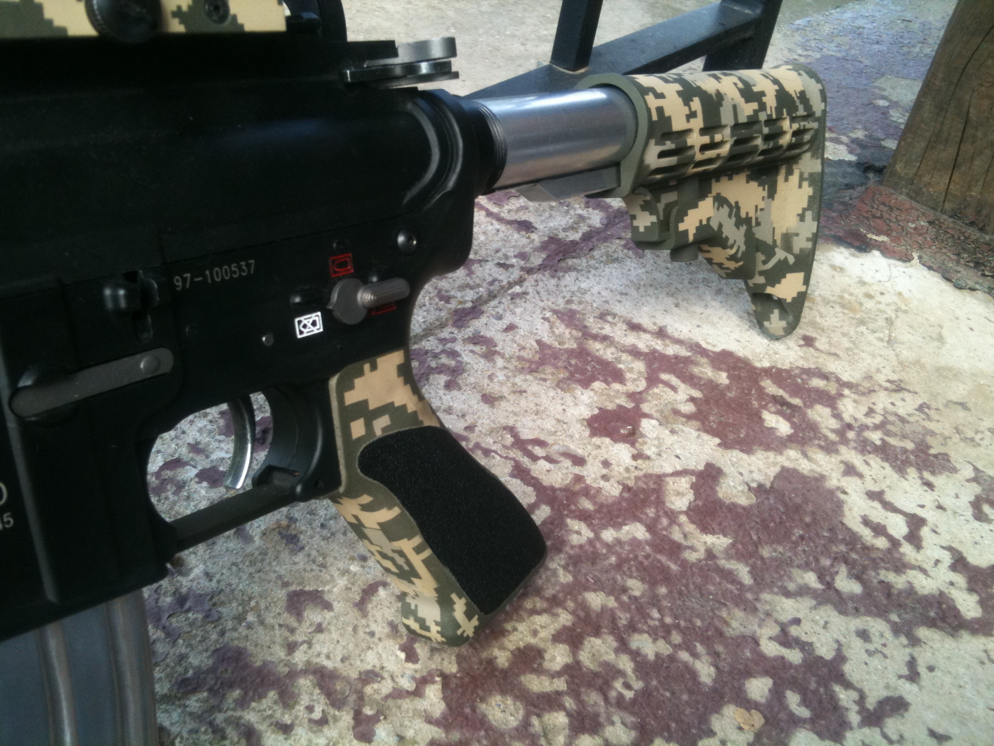 podla mna by si to mal nechať takto decentne  niesom zrovna fanúšikom kamuflovaných zbraní ale niektoré sú fakt parádne..takže možno časom..celá zbran v digitále by ale podla mna bola tfuj  Ale inak parádna robota