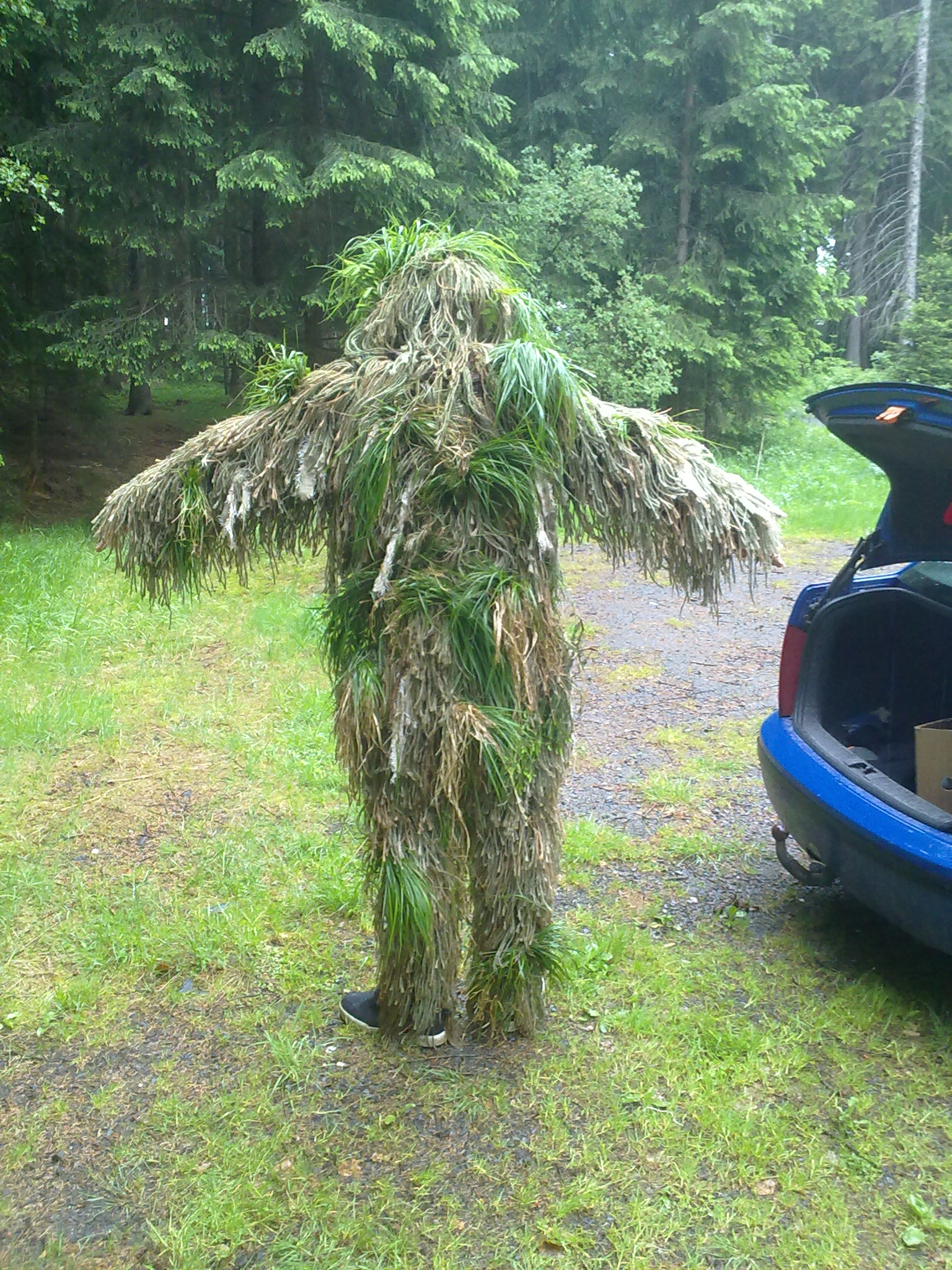 Sice ty světlý docela svítěj, ale myslím že si to ještě sedne. a kdyby ne, tak to trošku zašpiníš a bude to super. Jinak obecně když už máte někdo trochu slušnýho hejkala, tak by bylo fajn fotit ho i zepředu apod. Ať je vidět konstrukce a jak je to celkově řešený. Chlupy na zádech jsou fajn, ale o uživatelských vlastnostech to moc nevypovídá  ad ghillie competition, slyšel jsem o soutěži odstřelovačů na slovensku kde měli za úkol se někam nepozorovaně proplížit. Všichni hejkaly, vegetaci atd., ale jedinej člověk co se dostal až do cíle měl na sobě jen a pouze slovenský maskáče vz.97 a nic víc  PS: ta druhá fotka na zahrádce mezi keříkama je supercool, taky si musím podobnou udělat