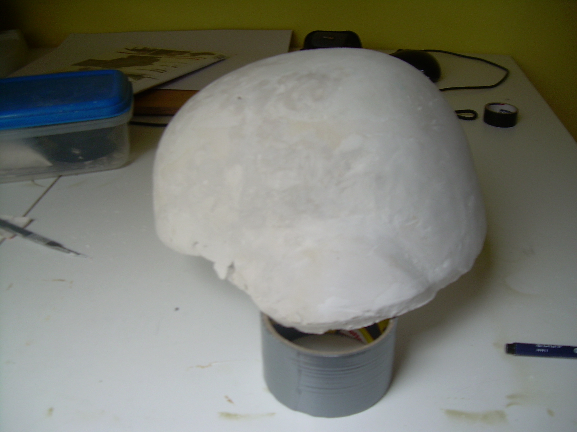 Takže z nudy jsem se asi před měsícem pustil do Do-Do stavby "českýho Rabintexu." Hlavně díky předchozí stavbě přileb od kluků z Blanska jsem věděl jak na to. Začal jsem tedy úplně stejně, vnitřním odlitkem přilby ACH 2000 ze sádry. Po asi měsíčním schnutí začala snaha o vyklepnutí, to byla ale je*ačka Musel jsem nakonec odlitek ještě v přilbě rozříznout opatrně na půl, no pak už to šlo vcelku hladce. Pokračoval jsem úpravou odlitku, bohužel jediným materiálem byly snad všechny fotky kde byla aspoň trochu vidět vytvářená přilba. Naštěstí jsem narazil i na fotku Čechů a Američanů, takže bylo z čeho vycházet. Jako materiál samotné přilby jsem zvolil sklolaminát, použil jsem 0,5 kg pryskyřici Lamit 109 a skelnou tkaninu 355 g/m2. Na snížení nasákavosti sádry jsem použil horký parafín, vcelku dobrý nápad  Skelnou tkaninu jsem nanášel ve třech vrstvách, padlo jí cca. 0,4m2 a celé půl kilo pryskyřice. Brousil jsem opnutým brusným kotoučem ve vrtačce (rukou bych se s tím mrdal ještě teď). Finálně by to chtělo ještě přejet kitem, ale ten až časem. Pro teď je na přilbě nandán pouštní potah, ještě by to chtělo vyměnit šrouby. Řemínky jsou prozatím z MICH-2000, ale už pracuju na novejch podle fotek. Přidávám pár fotek ze stavby a malou ochutnávku toho jak to vypadá teď.