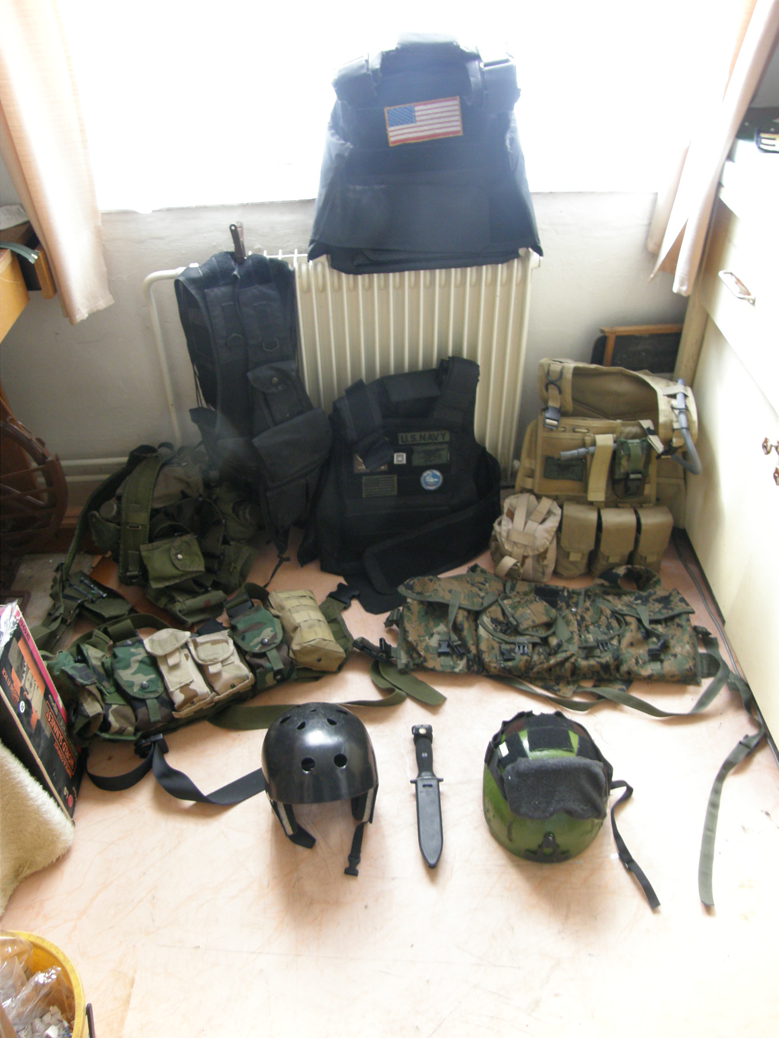 Moje a bráchova výstroj. Nedával jsem tam batohy, bílé převlekáče a ostatní blbosti které taháme jen někdy. Maskáče nosíme woodland, 3Desert a Multicam. Případné dotazy přes PM