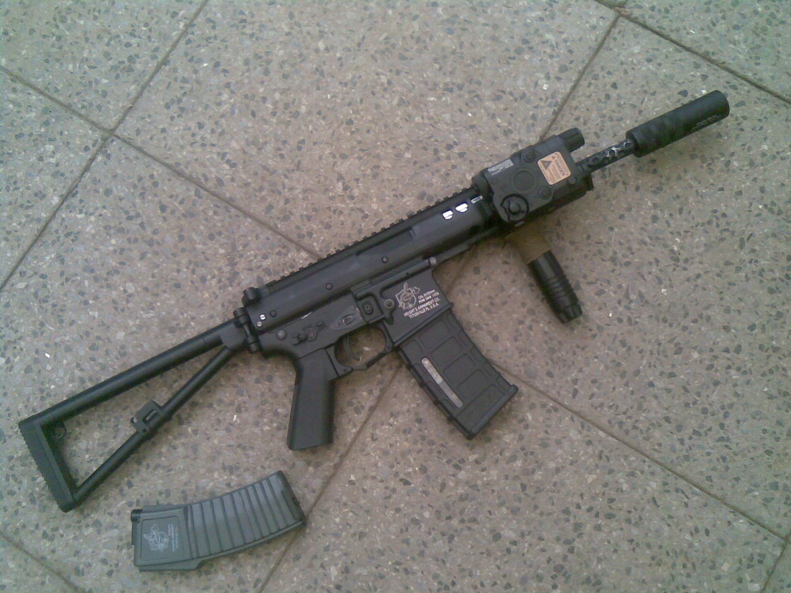 KAC PDW Koupeno jako šrot s ulomenou hlavní a pažbou i s kusem spodní části těla bez většiny dílů. Opravou jsem strávil nekonečnýh 14 hodin v dílně, ale teď je jak novej  Ba ještě lepší  Dostal jsem k tomu tlumič od ASpro, origo mag a Pmag. Cena taková, že vám ji ani nemůžu říct, protože bych vás akorát nasral.  Příloha: