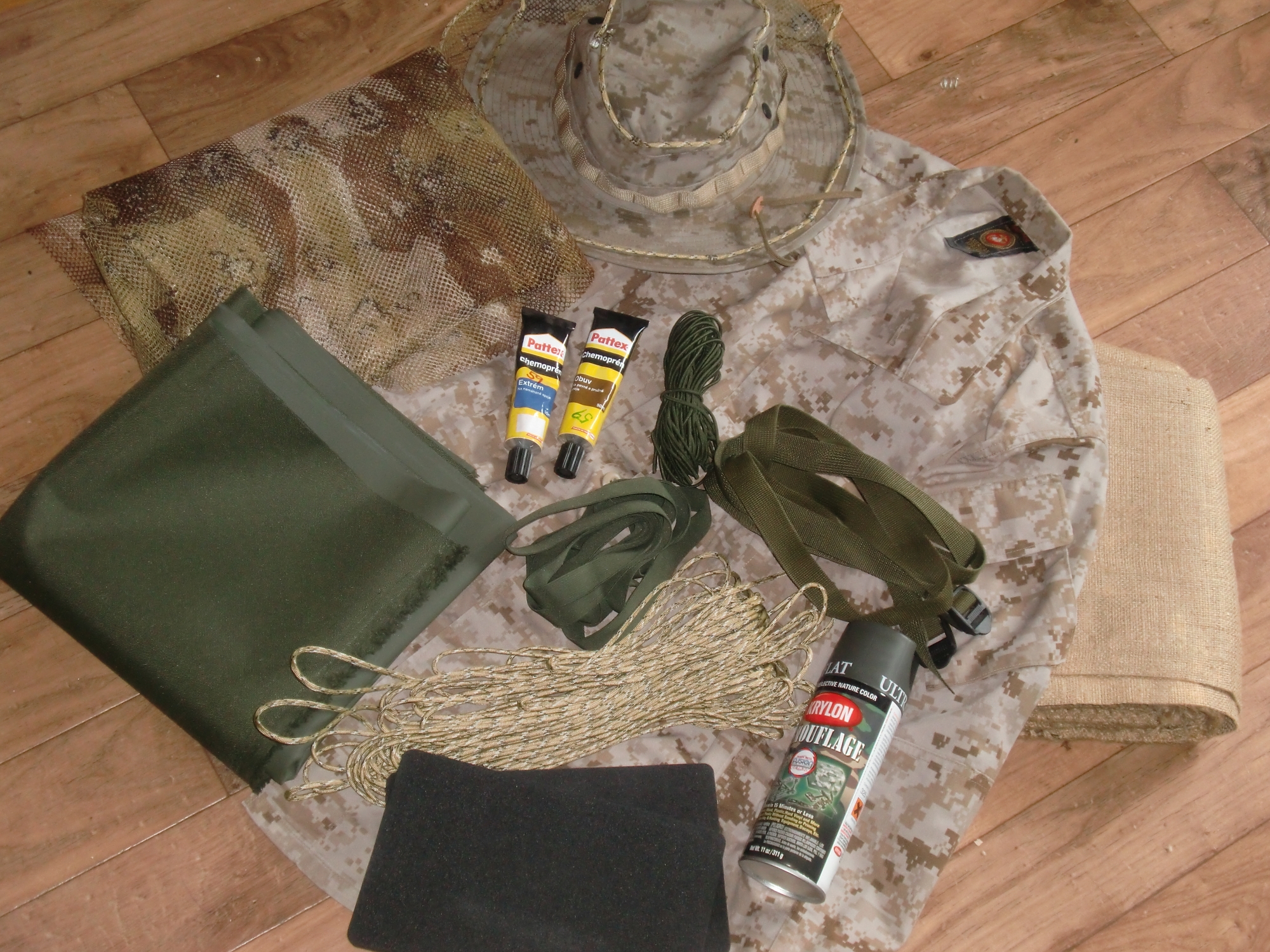 3,50 je pěkný, já měl asi 100m z rozřezanýho padáku zadarmo a to je taky fajn cena  , ale teda barva otřesná, taková sytě lesklá zelená Jinak poslední nákupy byla hromada věcí na novýho hejkala: marpat blůza(origo) a klobouk(truspec), Desert6 snipermesh, olivovej 600D nylon, neopreny do kalhot, desert padákovka, OD Krylon, juta, nylonový popruhy, pruženky a lepidlo (zatím to vypadá že Chemopren na obuv nebyla blbá volba). Ještě tam teda chybí kalhoty, ale nějak dočasně došel cash