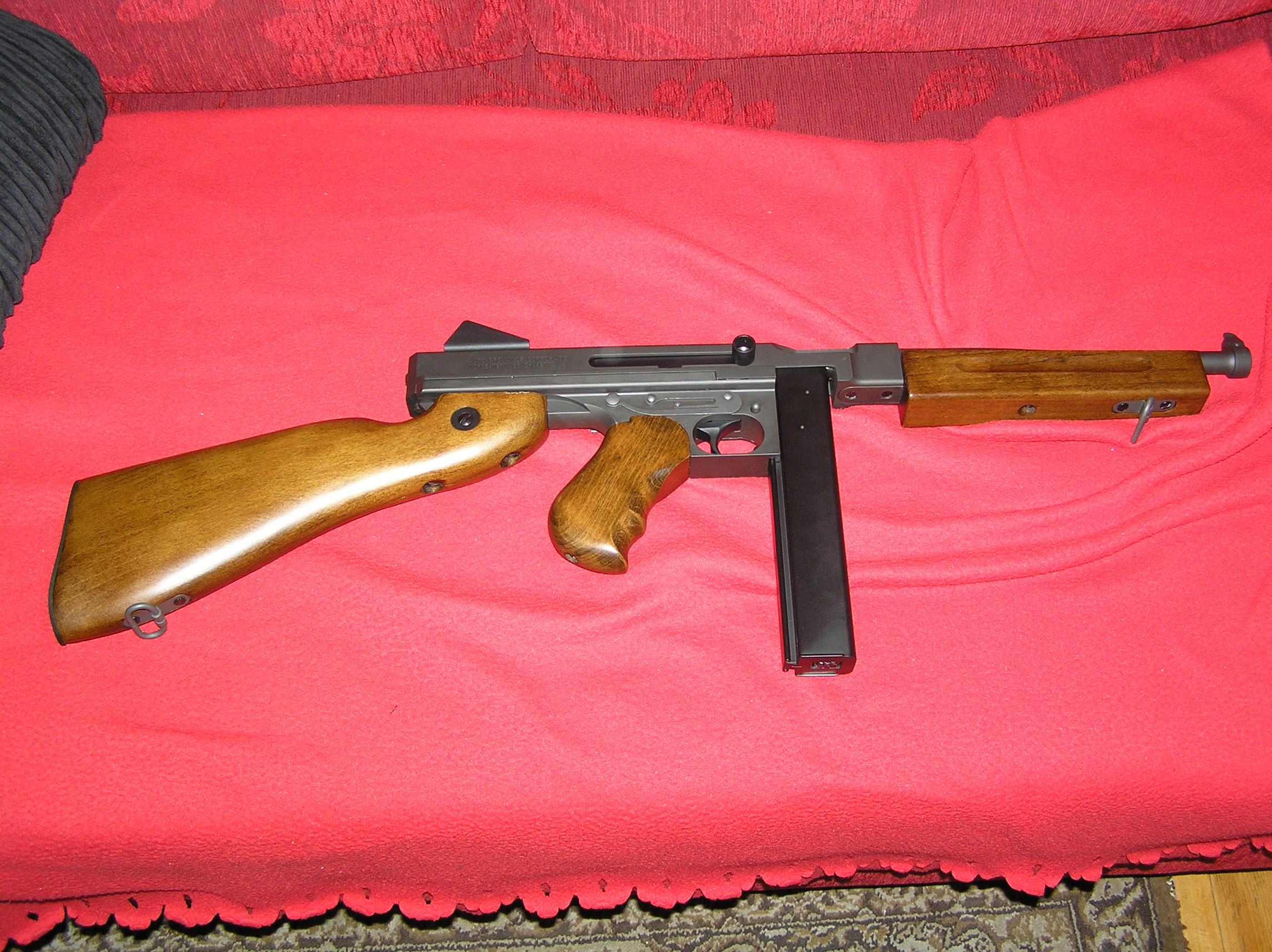Takže po dvoch čínach som sa rozhodol do zbrane zainvestovať kedže pôjde o zbraň už nafurt.Už od krabice až po samotnú zbraň to bol nezvyk.Perfektné spracovanie.King arms M1A1 Thompson drevo, kov..a ešte ASG ultimate hlava valca V6.Fotky nič moc + debilné osvetlenie ale mám z toho radosť tak som to sem musel dať  edit : ono hong kong je vlastne tiež čína nem?ale totok je fakt super spracované..