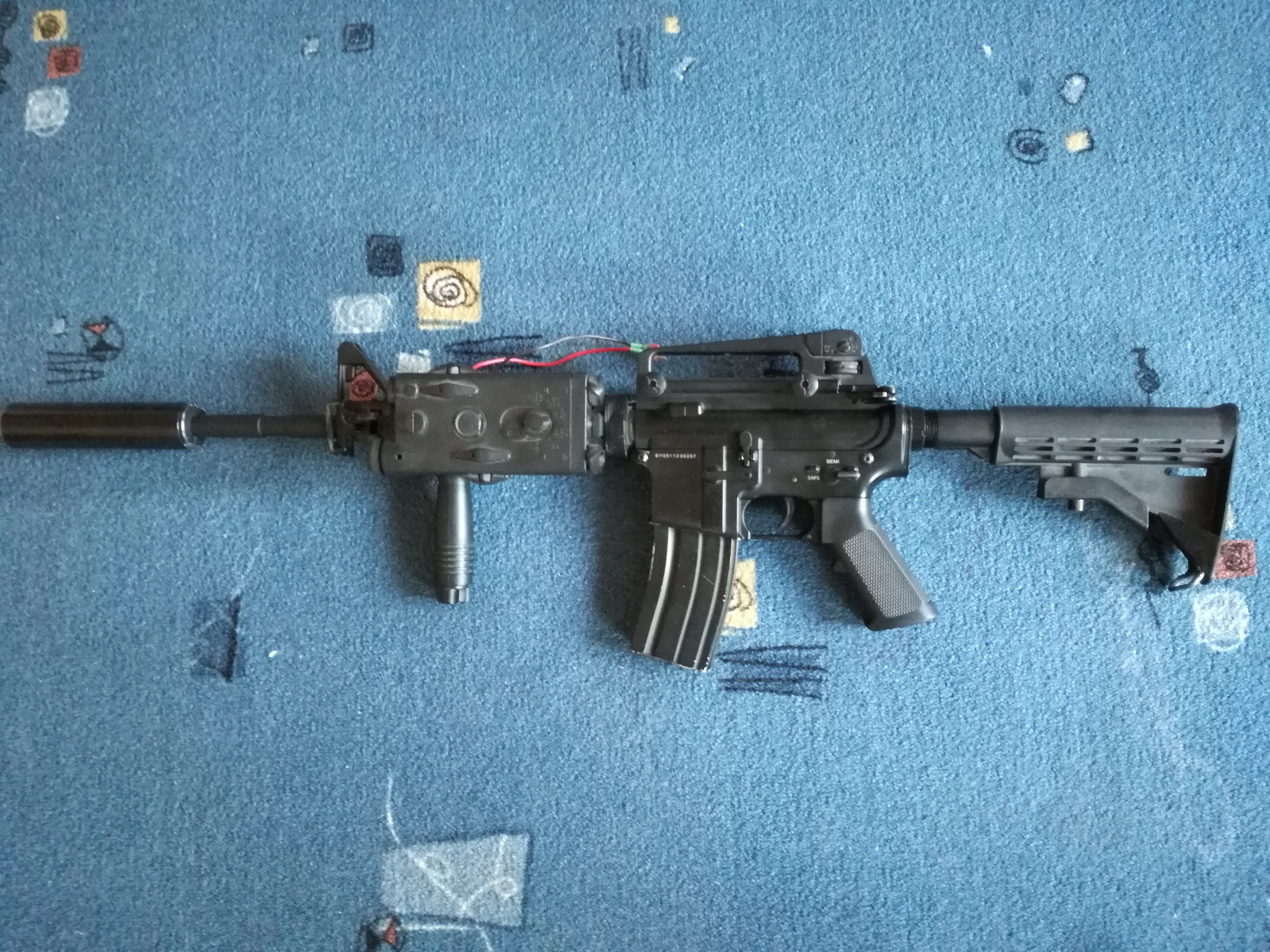 Dobrý den prodám m4ris s upgradem-Nová pružina,trn tryska od značky shs a nová hop up komora MBlock. Dale přidám Kuličky guarder 0.25g, Psbp 0,25g, one shoot 0.23g.Díly které ve zbrani byli původně : pružina , kabeláž s pojistkou, válec ,trn.Dále 2krát točný zásobník , Camelback , Vestu , brýle , kuklu a klobouk(Při rychlém jednání SLEVA) lze prodat i jednotlivě