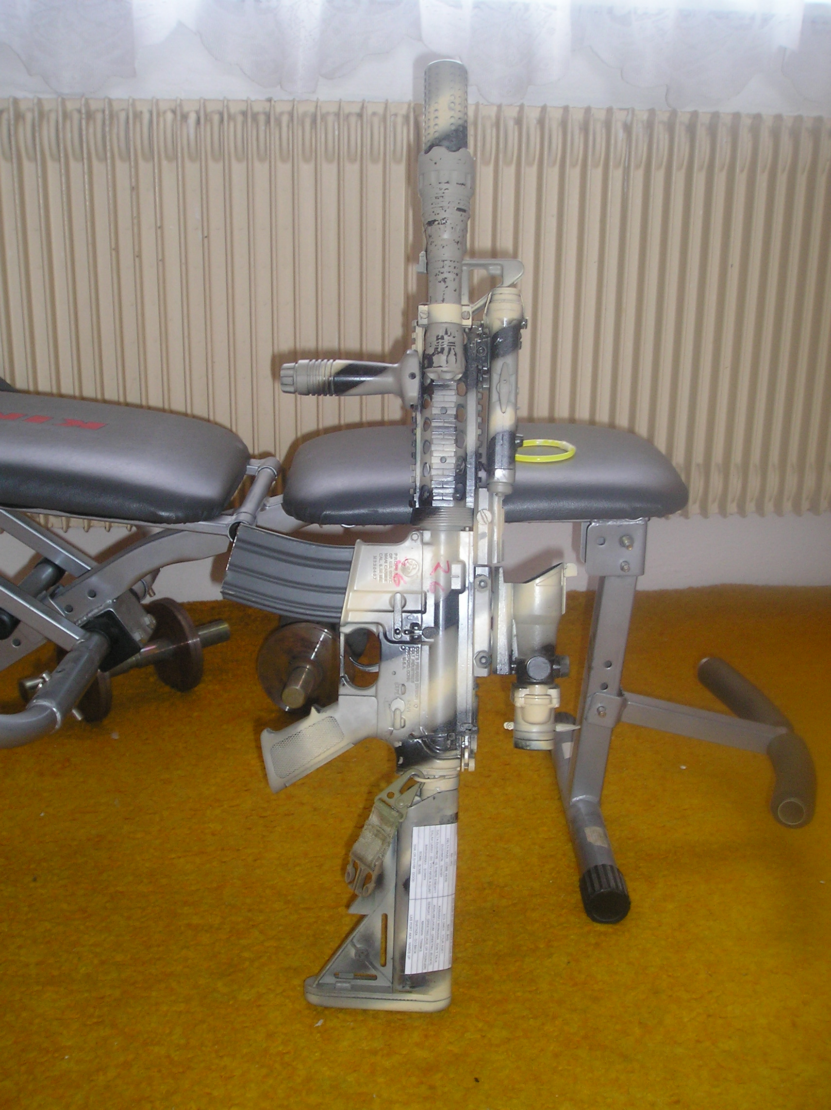 No barevně se mi moc nepáčí - udělal bych to celý v tý barvě s digitalem...ale vnitřek je už zajímavější  jinak mám rád dlouhý pádla... Jenom mi tam teda dost chybí optika - se 150tkou pružinou už by se ta optika dala pěkně využít.