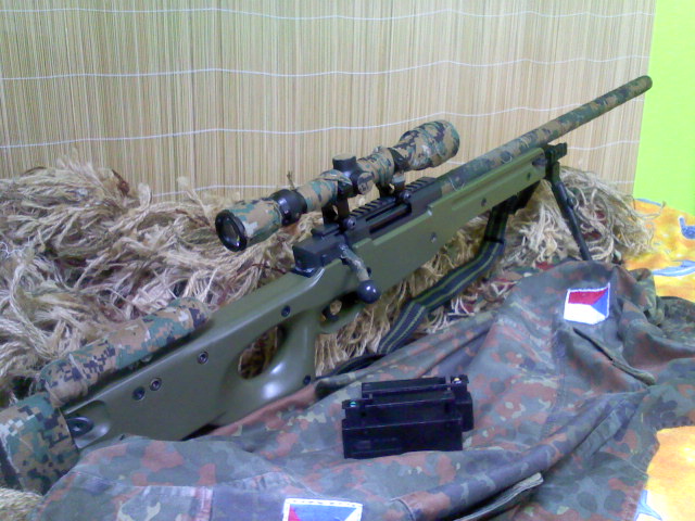 Jo, máš pravdu:-) Sem hňup  a plácám chujoviny http://en.wikipedia.org/wiki/Heckler_%26_Koch_G3Není to juta, je to pro mně mnohem dostupnější- levnější materiál: obvazy  část je bíla-barvená na zeleno / béžovo, část už byla zelená (tuším že ty jsou v obvazech vz.80) Jutu sem kdysi na tohle používal, ale v terénu se to až moc páralo, třepilo a lezlo to ze zbraně dolů, nebo sem měl každou chvíli čočku na optice plnou vláken  s obvazem tohle neřeším ony se rozpářou, zmoknou ale pořád drží, v podstatě tak, že to nemusím sundávat ani při rozborce (jen část která je mezi tlumičem a hlavní, protože pro rozborku musím odšroubovat tlumič) pod tím je ještě barevný nástřik ale vypadalo to divně, takhle se mi líbí víc:-) (podstatný faktor)