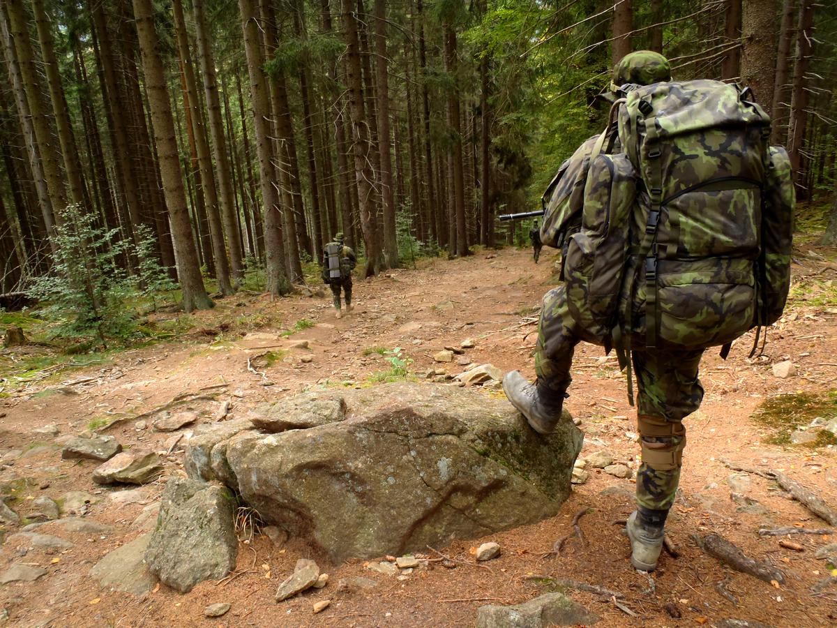 Fotky z pochodu na Šumavský Boubín. trocha údajů: Váha výstroje a výzbroje celkem: 45kg (měřeno), délka trasy 18.5km, výškový rozdíl při stoupání (Kubova Huť ŽST - Boubín rozhledna): 367m na délce 4km, sestup: 512m n. m na délce cca 14.5km. Závěr: "Na Boubín jedině lanovkou  "