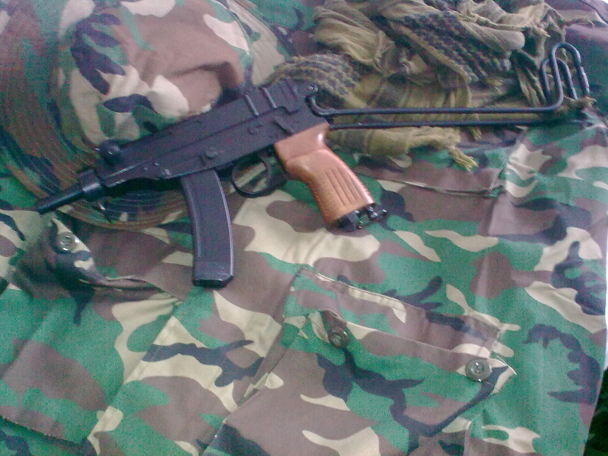 Tak to je moje US-CZ vybavení Komplet Woodland a k tomu vz. 61(TM manuálka, jak jinak  ) Jo a mám k němu ještě tlumič(dělán původně na pistoli, zde funguje jako silnič...)