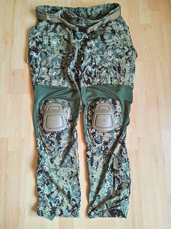 Hraju airsoft nejake dva roky, zadnou konkretni jednotku nenapodobuju, vzdy si beru to co se mi hodi libi a vyhovuje. Pred vic nez pul rokem sem zahlidl ze existuje maskovaci vzor AOR2, ktery je svetlejsi (zelenejsi) nez MARPAT a mohl by se do nasich podminek taky hodit. Podarilo se mi sehnat kopie z tajwanu a ciny, ktere nestoji takovy sileny majlant jako originaly a poskladal sem nasledujici vystroj. Na nase letni zelene prostredi je to celkem dost vhodne, osobne myslim, ze lepsi nez multicam. Ale na podzim se budou uz vic hodit MARPATy, ktere jsou vic dohneda. Chapu ze nekdo bude ohrnovat nos, ze to jsou hnusne kopie, ale reenacting neprovozuju, takze mi to na "takoveto vikendove valcenicko" zatim staci  EDIT: Takze na nasledujicich fotkach (krom prilby) je pomerne novy digitalni vzor urceny vyhradne pro americke namornictvo (NAVY) do lesnateho terenu znamy pod oznacenim AOR2. Tento vzor pouzivaji v soucasnosti jednotky NAVY SEALs. Nejedna se o MARPAT ani CADPAT. Vesta je kopca od TMC 6094 style Plate Carrier AOR2 doplnena o dvojsumku na M4 zasobnik (prava strana zvenku) do kerych se vejdou presne male petky od RedBullu, kazda na 2000 BBs. Pod nimi v kapse vysilacka. Do klokani kapsy se krasne vejdou ctyri M4kovy zasobniky a aby nevypadly, stacilo na jednu stranu zasobniku nalepit maly kousek sucheho zipu. Vlevo zvenku je mini admin pack na nahradni baterky a multitool a uvnitr mam na zkousku Inner Triple Mag Pouch (puvodne urceny do klokani kapsy) se tremi dlouhymi M4kovymi zasobniky. PTT spinac pro levou ruku uchyceny do prechystanyho poutka. Kabelaz ke krkafonu se da dobre uchytit do suchacovych poutek po stranach ramenich popruhu. Zprava mam tak i vedenou hadici od camelbagu. Batuzek na nej je TMC Clips Hydration Carrier. No a odhazovak je taky TMC - Cordura Magazine Drop Pouch - z nej sem akorat odparal popruh pridrzujici ho na stehnu. Helma je kopca Fast Base Jump Military Helmet od Emersonu doplnena o drzaky FMA Z3AD Peltor for MSA Headset TB397. Do nich jsou nasazeny aktivni sluchatka s mikrofonem EMERSON - C-Tac Headset. Doplneno vlastnim "snake" nastrikem. Tahle prilba je zatim jeste ve stadiu priprav, chci tam jeste doplnit drzaky bryli a masky. Proto mam na veste ten krkafon, ktery pouzivam s jinou prilbou. Maskace sou barevne velmi povedene kopie AOR2 od Flash Force Industries. Bohuzel matros je velmi lehky (snad i Ripstop) a neodvazuju si ho prat, pouze namacet ve vlazne vode. Jinak usiti je celkem slusne, spickovy sou ty kneepady na kalhotach, uz nemusim tahat extra chranice na kolena  a jejich vyska se da stelovat zevnitr, takze ja mate pokazda presne na koleni a nikam nesklouzavaji. Na triku jsou fajn kapsy, ktere jsou uz nasite zesikma a pojistene jak na origu dvema knofliky a suchacem na cennosti. Material na trupu neni takovy ten klasicky funkcni co zname z taktickych tricek, coz je skoda, spis jakoby bavlna. No ja si proste pod nej vzal lehky funkcni tricko a pohoda, ani teplo, ani zima  EDIT: Po nejake dobe sem zjistil ze kopie od TMC je fakt silena nouzovka a vymenil sem vyrobce za tajwanskou firmu A-Two. Dale v tomhle trejdu sou fotky jak vypadaji jejich vyrobky.