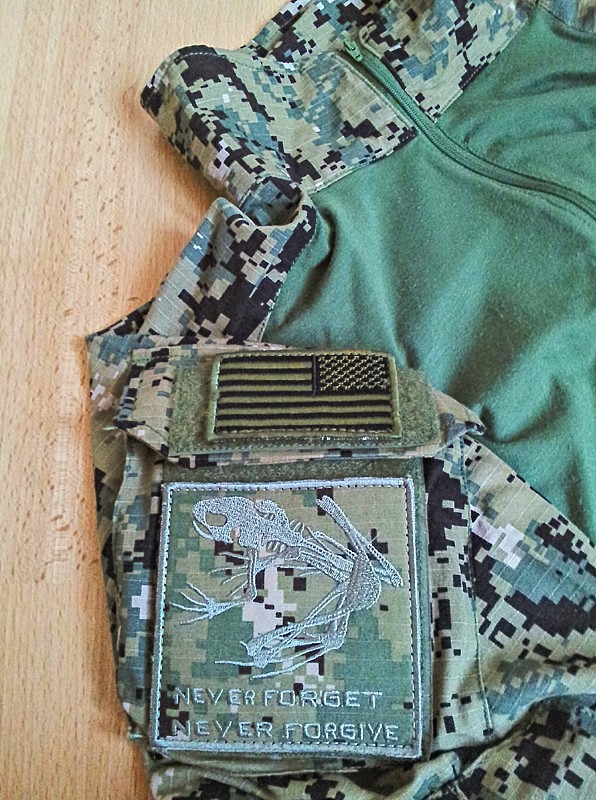 Hraju airsoft nejake dva roky, zadnou konkretni jednotku nenapodobuju, vzdy si beru to co se mi hodi libi a vyhovuje. Pred vic nez pul rokem sem zahlidl ze existuje maskovaci vzor AOR2, ktery je svetlejsi (zelenejsi) nez MARPAT a mohl by se do nasich podminek taky hodit. Podarilo se mi sehnat kopie z tajwanu a ciny, ktere nestoji takovy sileny majlant jako originaly a poskladal sem nasledujici vystroj. Na nase letni zelene prostredi je to celkem dost vhodne, osobne myslim, ze lepsi nez multicam. Ale na podzim se budou uz vic hodit MARPATy, ktere jsou vic dohneda. Chapu ze nekdo bude ohrnovat nos, ze to jsou hnusne kopie, ale reenacting neprovozuju, takze mi to na "takoveto vikendove valcenicko" zatim staci  EDIT: Takze na nasledujicich fotkach (krom prilby) je pomerne novy digitalni vzor urceny vyhradne pro americke namornictvo (NAVY) do lesnateho terenu znamy pod oznacenim AOR2. Tento vzor pouzivaji v soucasnosti jednotky NAVY SEALs. Nejedna se o MARPAT ani CADPAT. Vesta je kopca od TMC 6094 style Plate Carrier AOR2 doplnena o dvojsumku na M4 zasobnik (prava strana zvenku) do kerych se vejdou presne male petky od RedBullu, kazda na 2000 BBs. Pod nimi v kapse vysilacka. Do klokani kapsy se krasne vejdou ctyri M4kovy zasobniky a aby nevypadly, stacilo na jednu stranu zasobniku nalepit maly kousek sucheho zipu. Vlevo zvenku je mini admin pack na nahradni baterky a multitool a uvnitr mam na zkousku Inner Triple Mag Pouch (puvodne urceny do klokani kapsy) se tremi dlouhymi M4kovymi zasobniky. PTT spinac pro levou ruku uchyceny do prechystanyho poutka. Kabelaz ke krkafonu se da dobre uchytit do suchacovych poutek po stranach ramenich popruhu. Zprava mam tak i vedenou hadici od camelbagu. Batuzek na nej je TMC Clips Hydration Carrier. No a odhazovak je taky TMC - Cordura Magazine Drop Pouch - z nej sem akorat odparal popruh pridrzujici ho na stehnu. Helma je kopca Fast Base Jump Military Helmet od Emersonu doplnena o drzaky FMA Z3AD Peltor for MSA Headset TB397. Do nich jsou nasazeny aktivni sluchatka s mikrofonem EMERSON - C-Tac Headset. Doplneno vlastnim "snake" nastrikem. Tahle prilba je zatim jeste ve stadiu priprav, chci tam jeste doplnit drzaky bryli a masky. Proto mam na veste ten krkafon, ktery pouzivam s jinou prilbou. Maskace sou barevne velmi povedene kopie AOR2 od Flash Force Industries. Bohuzel matros je velmi lehky (snad i Ripstop) a neodvazuju si ho prat, pouze namacet ve vlazne vode. Jinak usiti je celkem slusne, spickovy sou ty kneepady na kalhotach, uz nemusim tahat extra chranice na kolena  a jejich vyska se da stelovat zevnitr, takze ja mate pokazda presne na koleni a nikam nesklouzavaji. Na triku jsou fajn kapsy, ktere jsou uz nasite zesikma a pojistene jak na origu dvema knofliky a suchacem na cennosti. Material na trupu neni takovy ten klasicky funkcni co zname z taktickych tricek, coz je skoda, spis jakoby bavlna. No ja si proste pod nej vzal lehky funkcni tricko a pohoda, ani teplo, ani zima  EDIT: Po nejake dobe sem zjistil ze kopie od TMC je fakt silena nouzovka a vymenil sem vyrobce za tajwanskou firmu A-Two. Dale v tomhle trejdu sou fotky jak vypadaji jejich vyrobky.