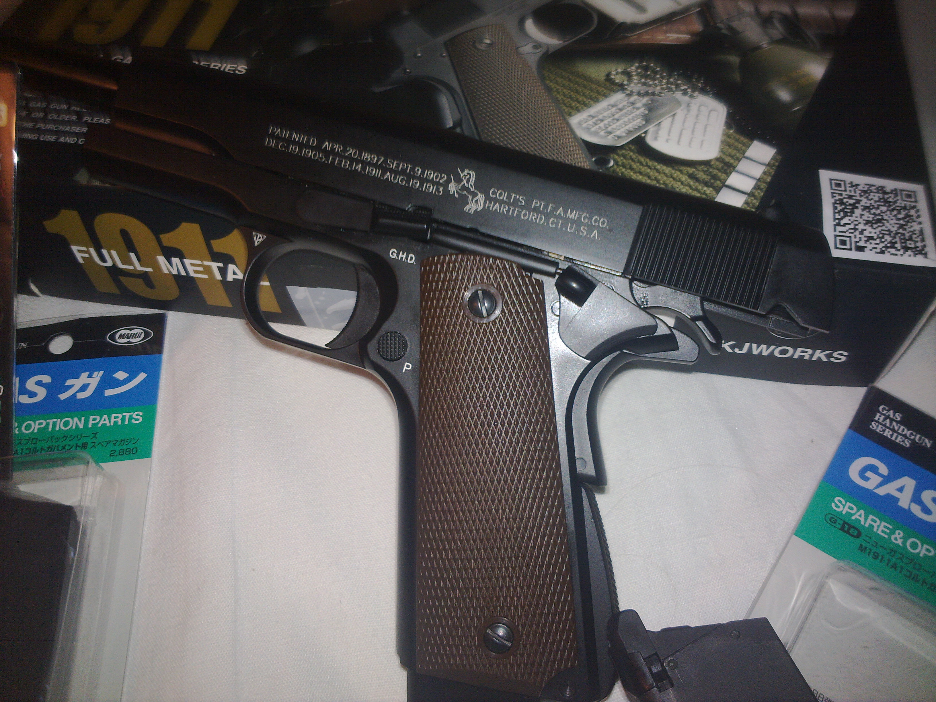 Tak dorazila zasielka z uncompany. KJW 1911A1 laser markings + 3x TM zasobnik + Nineball fialová hop guma. Ešte pribudne z dojčlandu 150% set pružiniek, hlava piestu a ravenka od PDI. Chcel som 1911od KJW a som sakra prekvapený..čakal som horšie spracovanie.